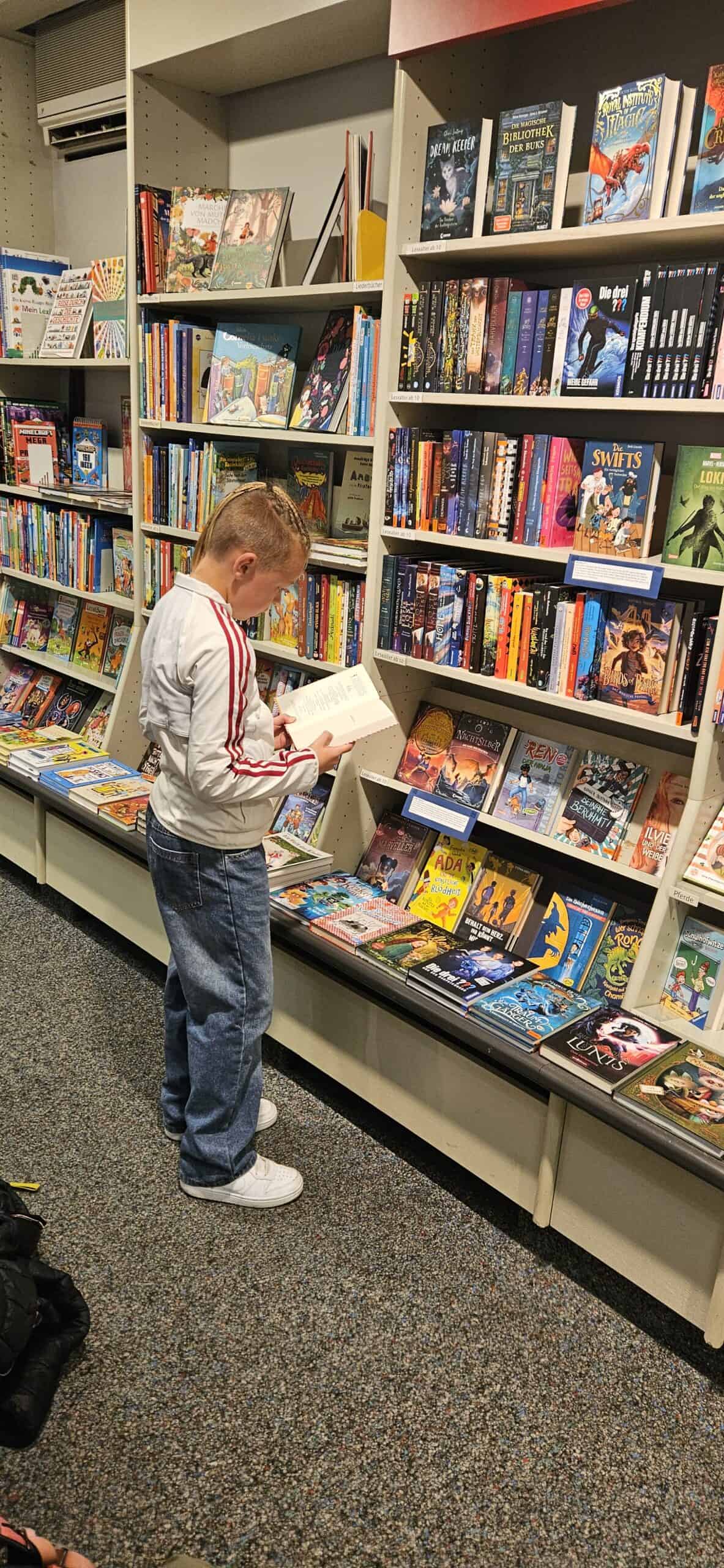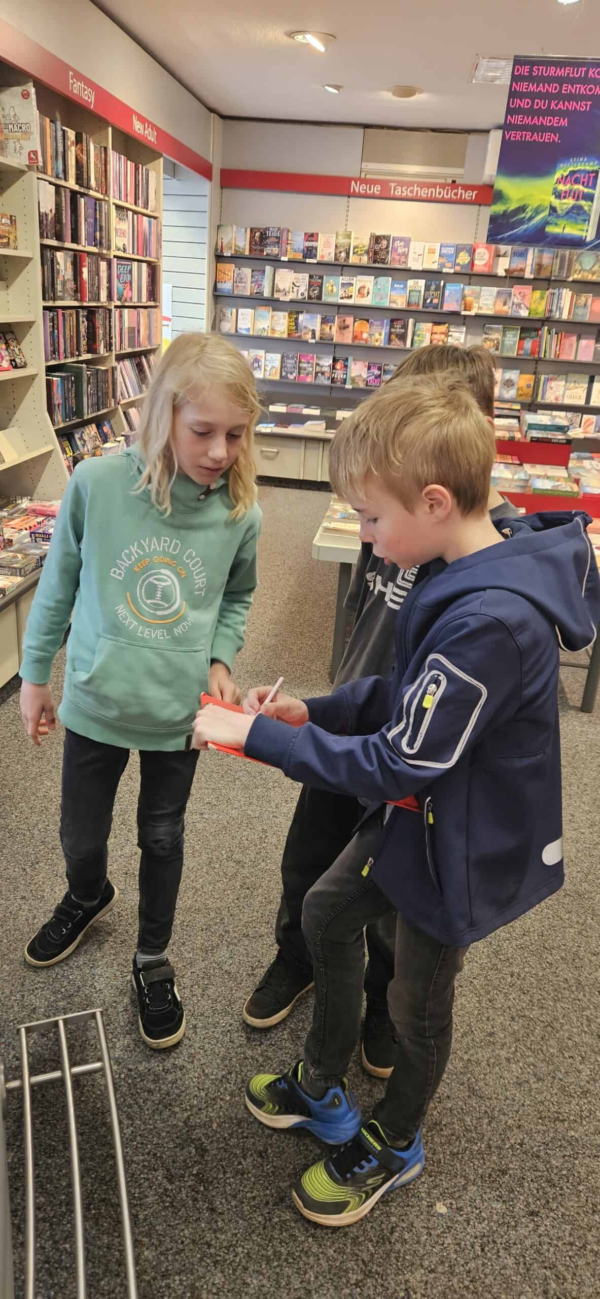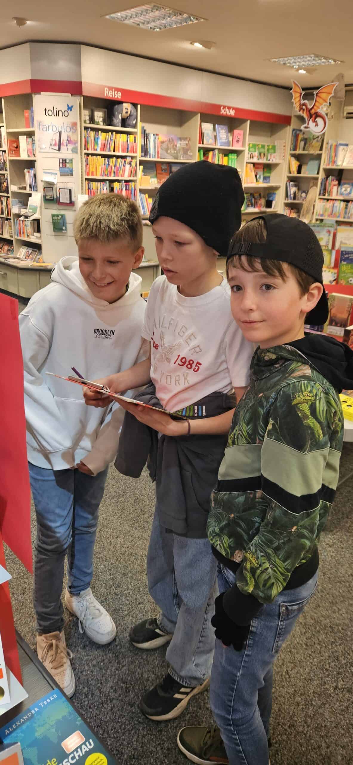 Auch unsere 4. Klasse feierte diesen besonderen Tag – mit einem Ausflug in die Buchhandlung Dänzer nach Gifhorn. Dort durften die Schülerinnen und Schüler ihre Buchgutscheine einlösen. Doch bevor sie ihr Geschenk entgegennehmen konnten, ging es auf eine spannende Rallye durch die Buchhandlung und die Umgebung. Mit Neugier und Spürsinn wurden Fragen gelöst, Hinweise gesucht und dabei ganz nebenbei viel über Bücher und die Welt der Literatur gelernt.