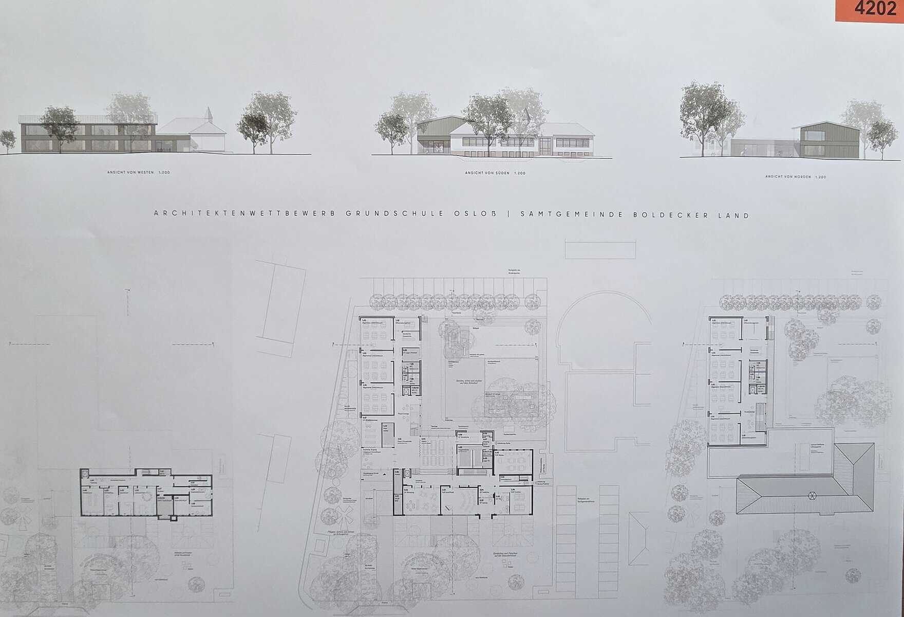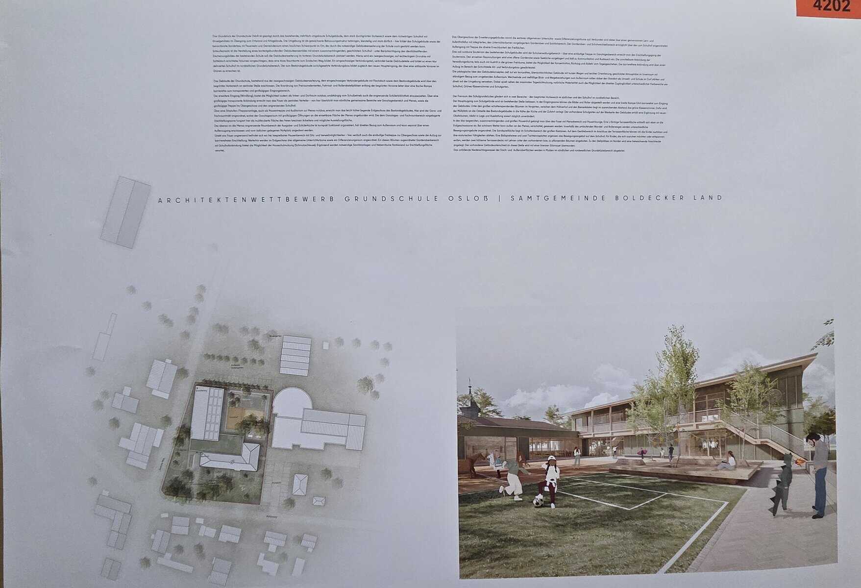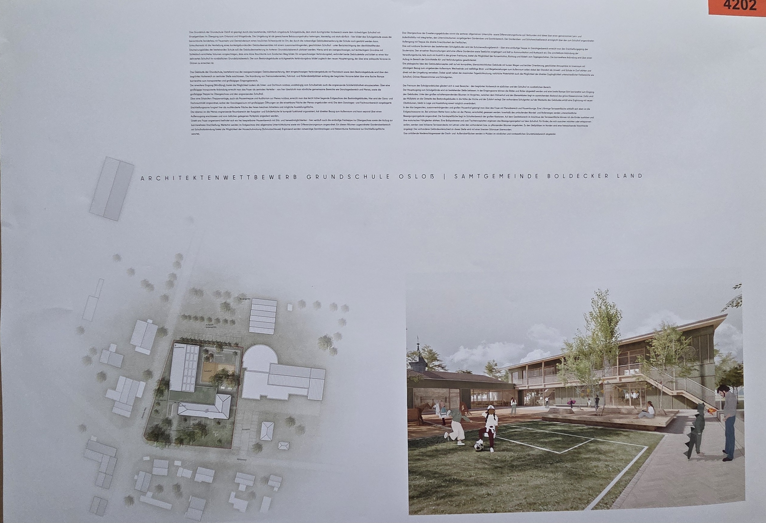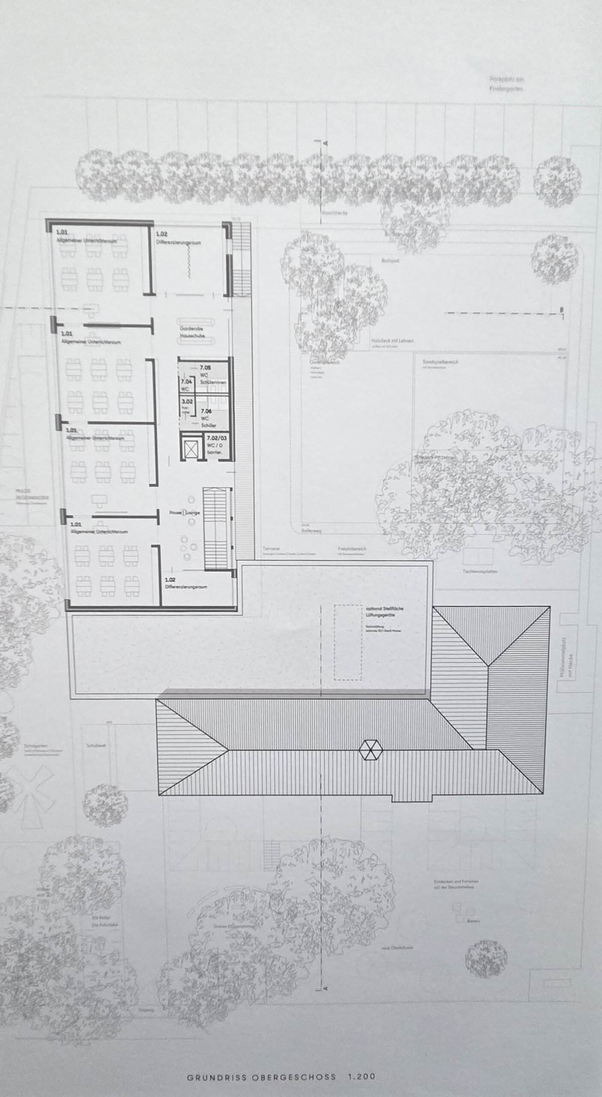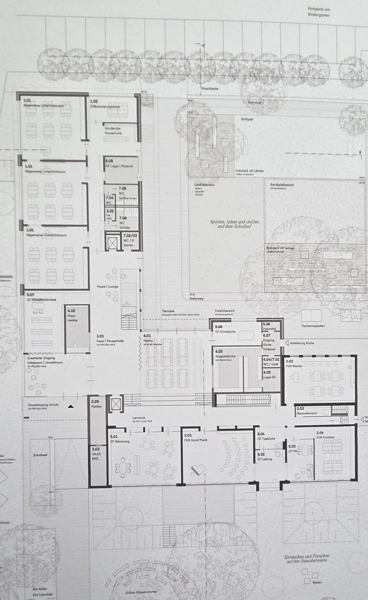 - Entwurf eines modernen Schulgebäudes mit Freiflächen und Gartenbereich, Planung für die Grundschule Osloß.