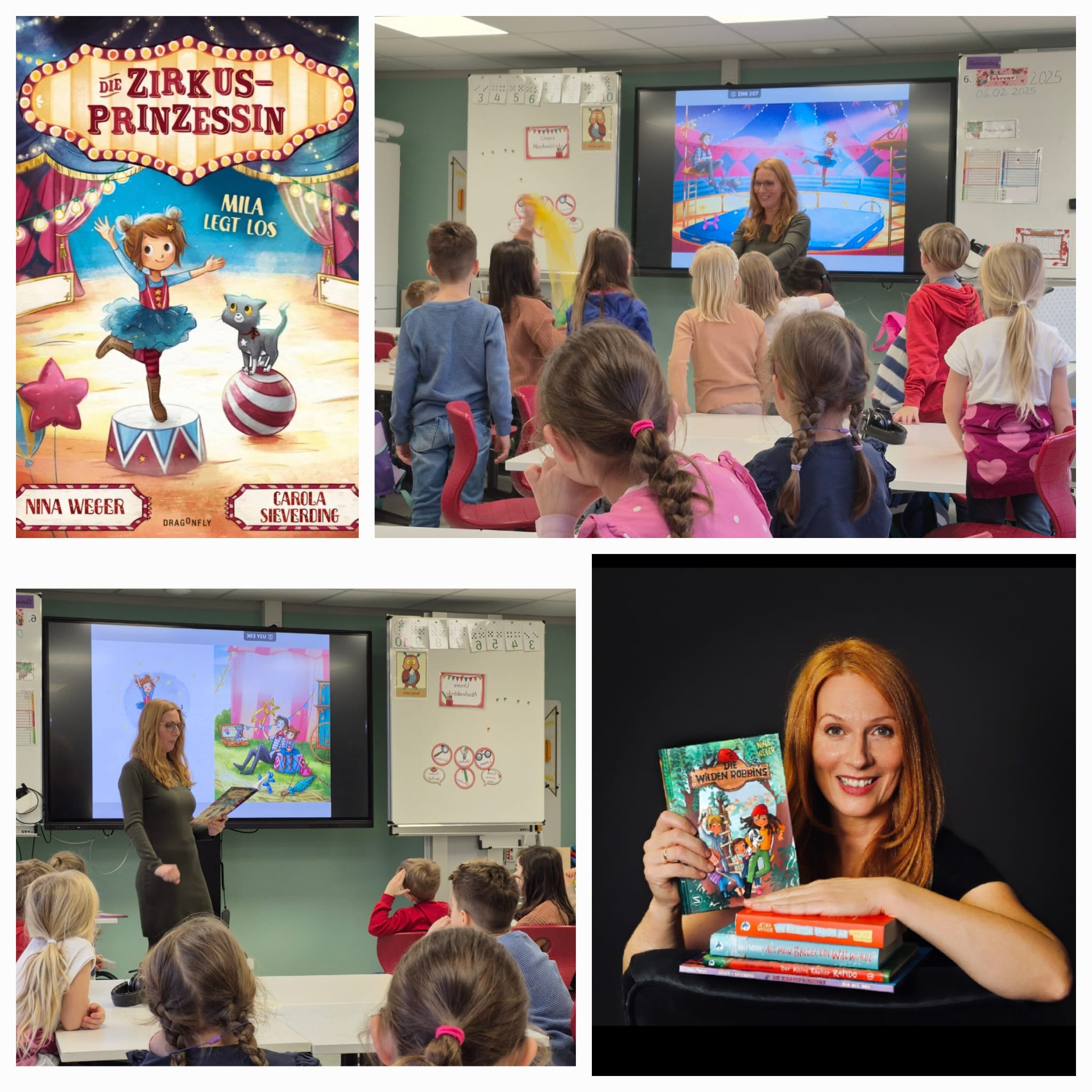 Am Donnerstag, den 06.02. und Freitag, den 07.02.25 besuchte uns erneut Autorin Nina Weger zu vier Autorenlesungen. Dabei begleiteten sie Zirkusprinzessin Mila, Räuber Rapido und die abenteuerliche Sommerwood Forest Bande, die wilden Robins, mit nur einem B.