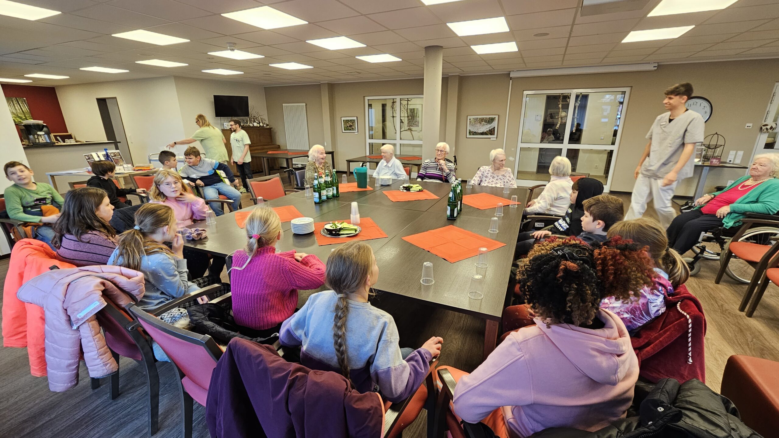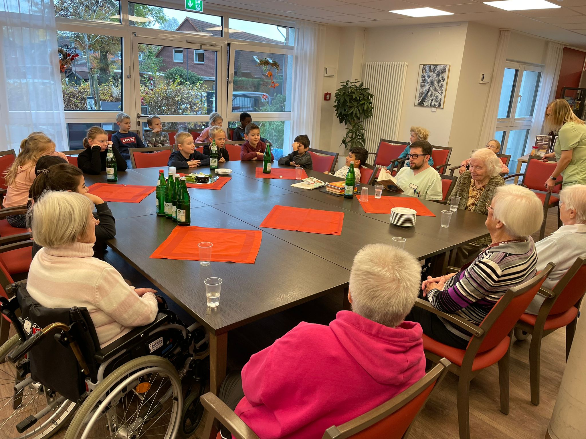Am Freitag, den 17.11.23 und Montag, den 20.11.23 besuchten unsere vier Klassen das Empatica im Rahmen des Bundesweiten Vorlesetages, um gemeinsam mit den Mitarbeitern und Mitarbeiterinnen sowie Bewohnerinnen und Bewohnern des Lebens- und Gesundheitszentrums geheimnisvollen sowie lehrreichen, aber auch weihnachtlichen und nachhaltigen Märchen und Geschichten zu lauschen. Besonders schön wurde es, als ein alter Adventskalender einer Bewohnerin, geschrieben in noch Altdeutscher Schrift, mit seinen kleinen Adventsgeschichten, plötzlich selbst zur eigentlichen Geschichte wurde. Sie las den Kindern die ersten Türchengeschichten vor und erzählte uns, wie wertvoll dieses kleinen Buch noch heute für sie sei und ließ uns dabei besinnlich werden und daran erinnern, dass eine Geschichte, gepaart mit wunderbaren Erinnerungen, so viel mehr wert ist, als oft materielle Dinge.