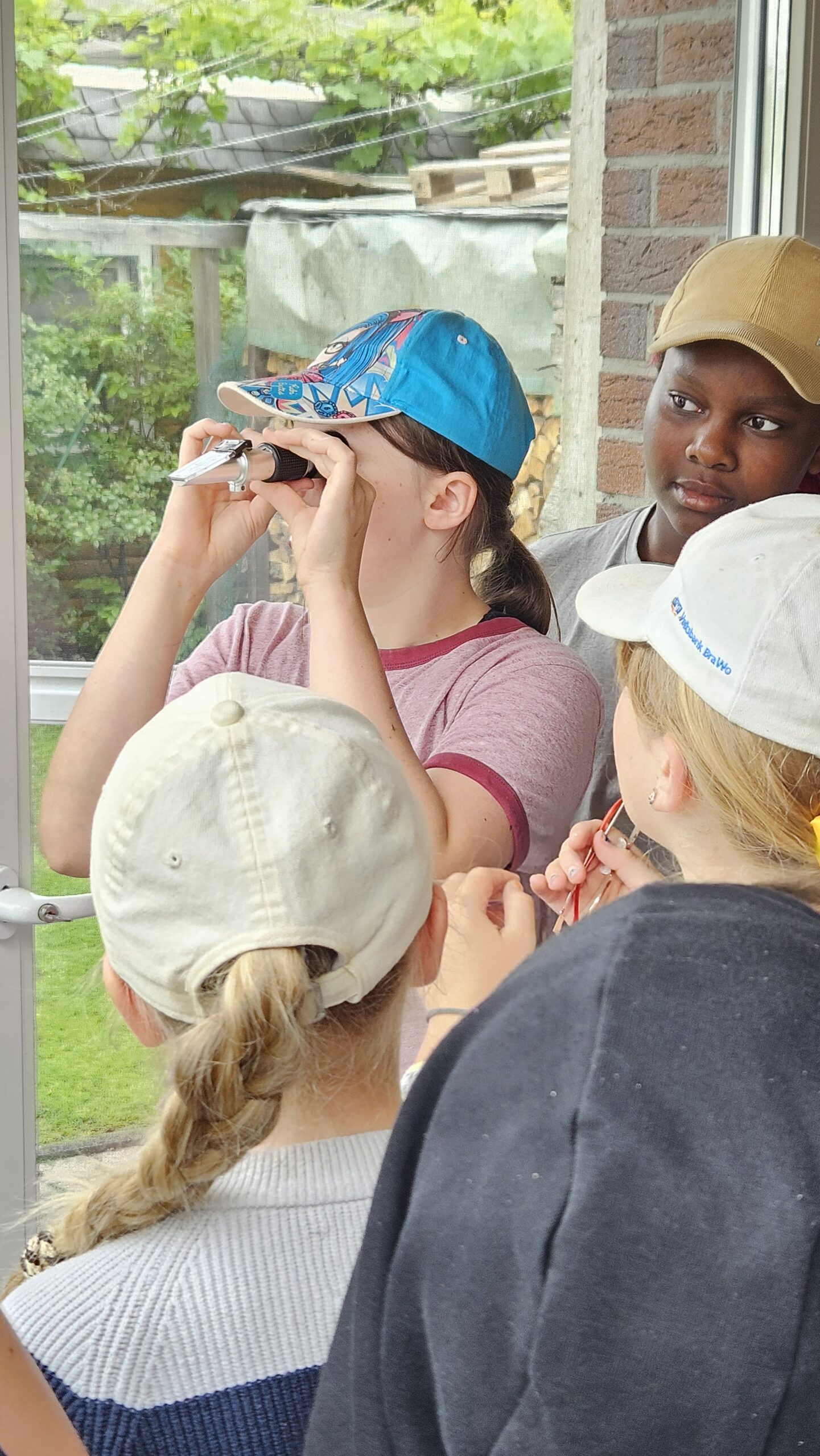 Zunächst wurde akribisch überprüft, ob der Honig auch die richtige und notwendige Luftfeuchtigkeit von 18% bereit hält, um im Anschluss den Honig vom Verdeckelungswachs, der sich in den einzelnen Rähmchen befindet, zu trennen. Hierfür nutzten die Kinder eine Art Metallkamm, um die Verdeckelung zu lösen. Darunter floss der pure, klare Honig und was danebenfloss musste natürlich gekostet werden.
