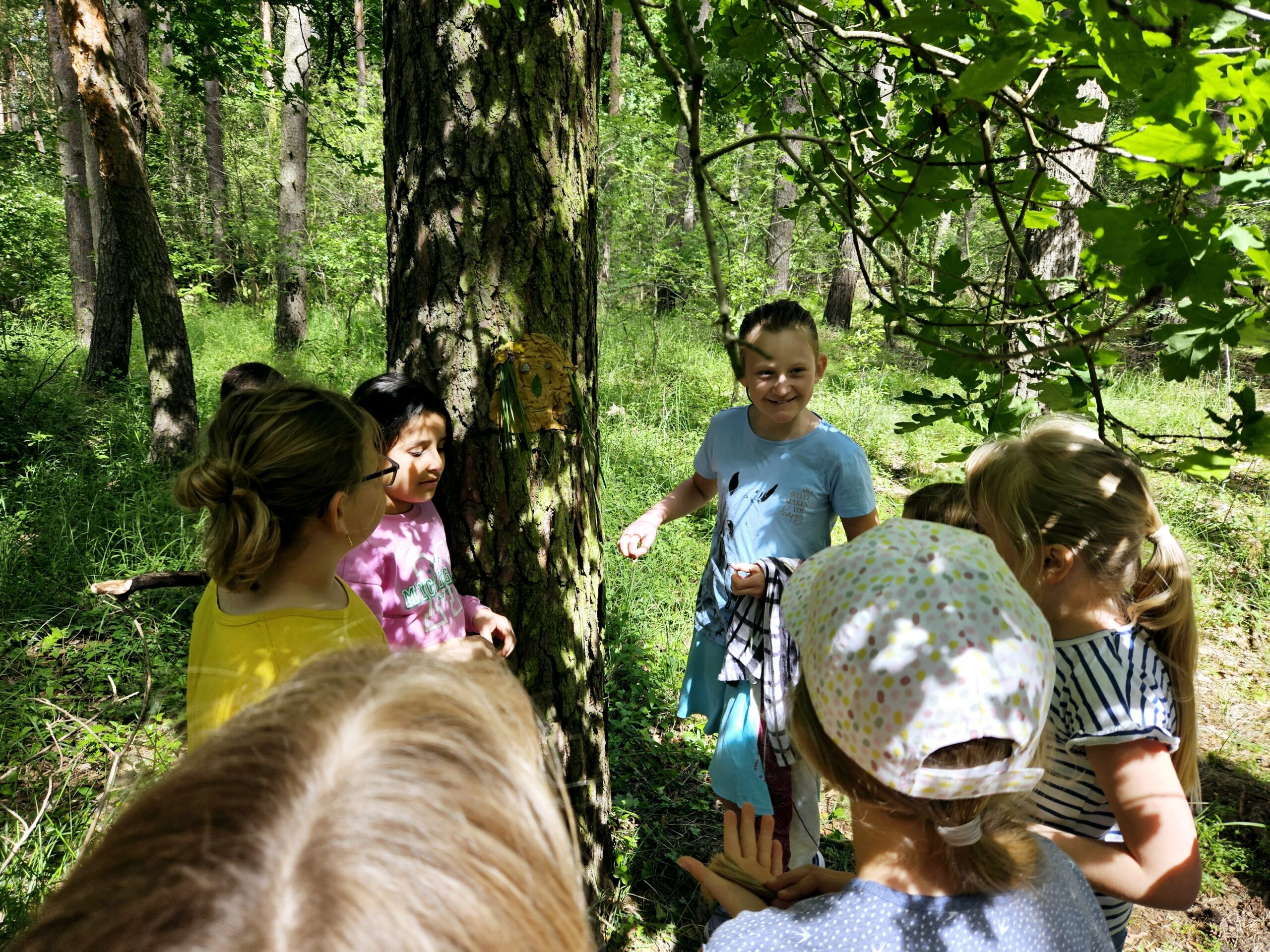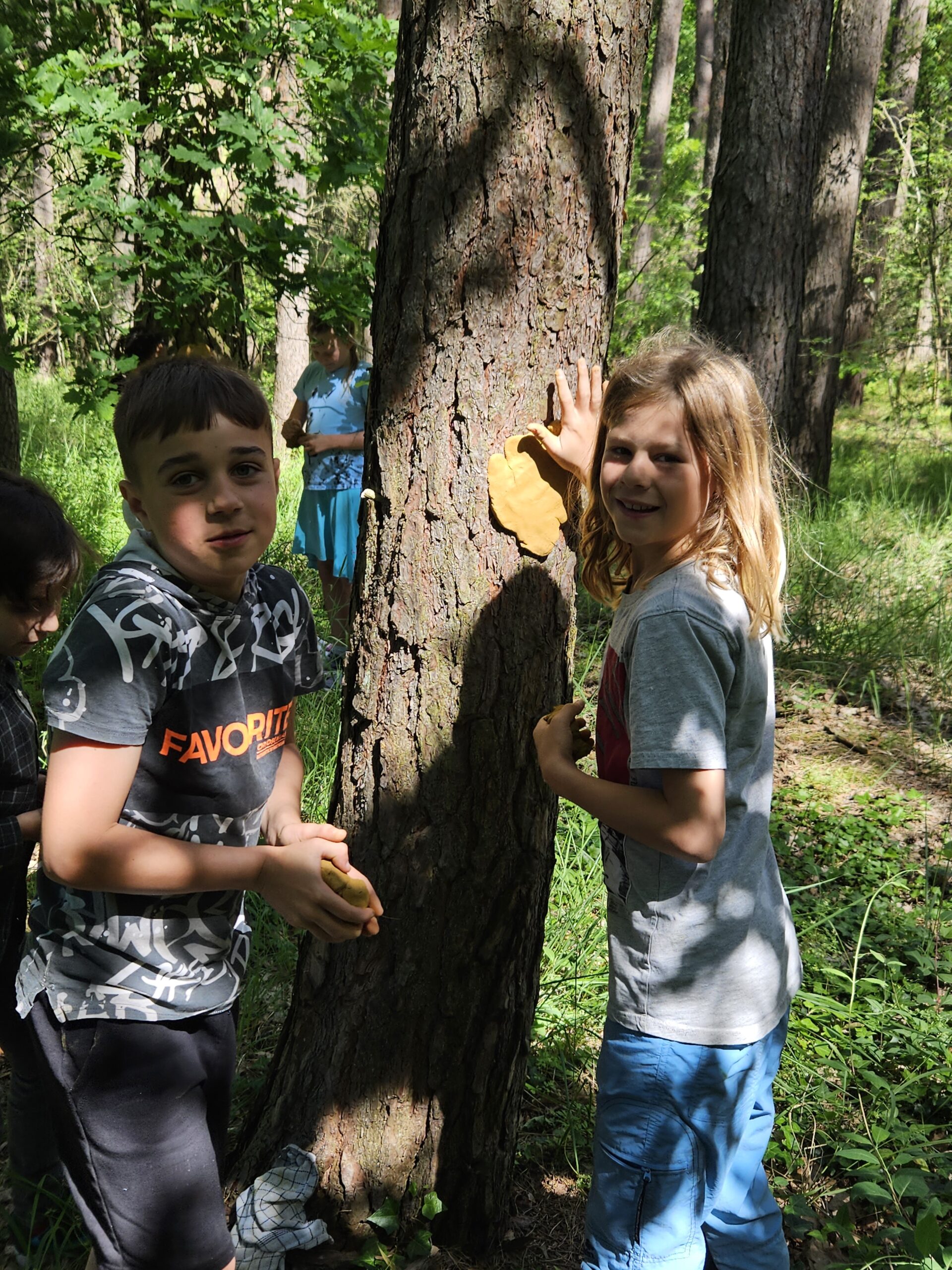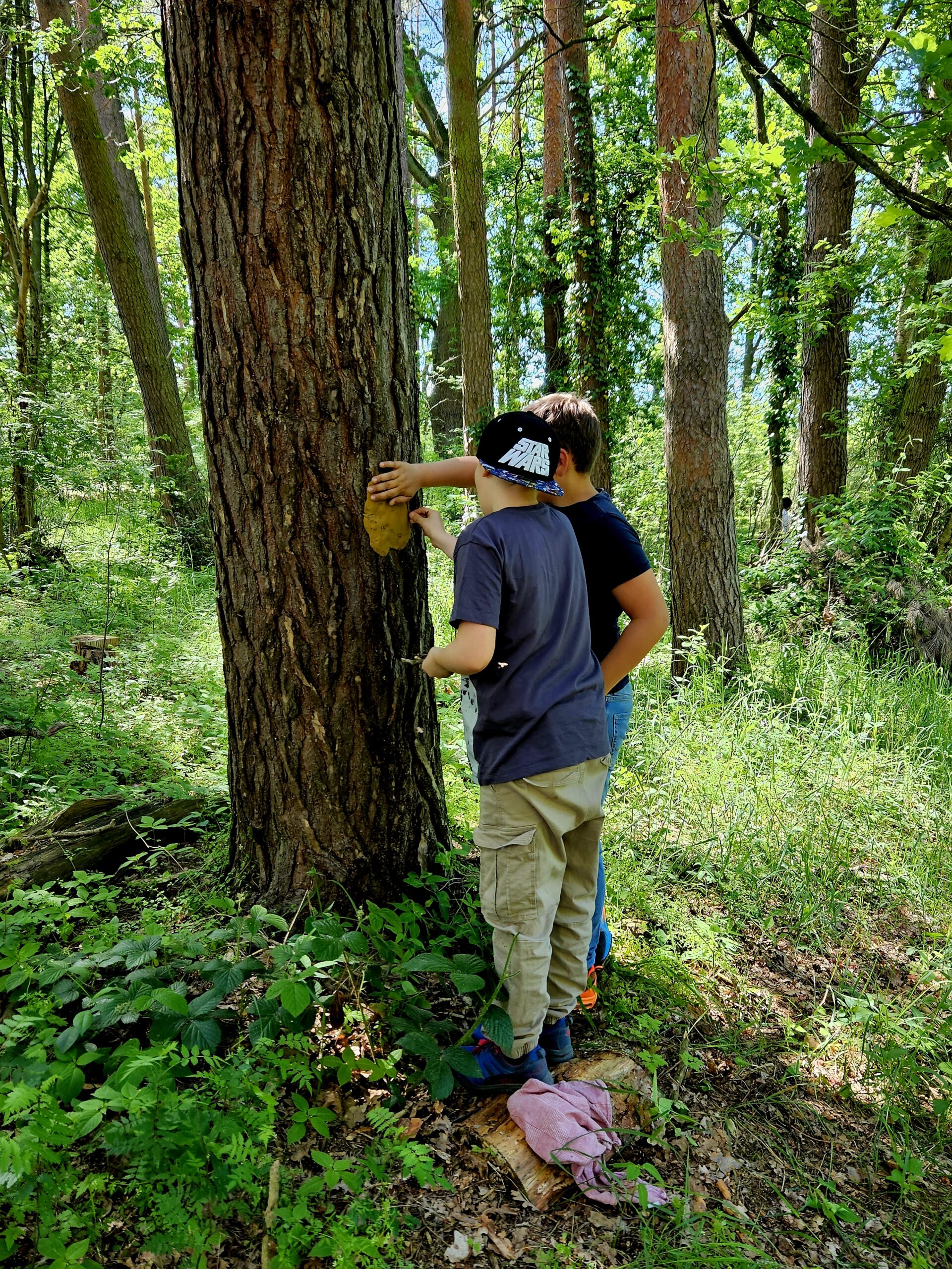 Im Rahmen unseres Werkunterrichtes haben die Kinder der 3.Klasse aus Ton und Naturmaterialien Waldgeister aus Naturmaterialien gestaltet. In Partnerarbeit setzen sie sich mit der Beschaffenheit des Materials auseinander und ließen ihrer Kreativität freien Lauf und lernen auch die Vergänglichkeit von Kunst kennen. Da Ton ein Naturmaterial ist, schadet es den Bäumen nicht und wird vom nächsten Regenguss abgewaschen.