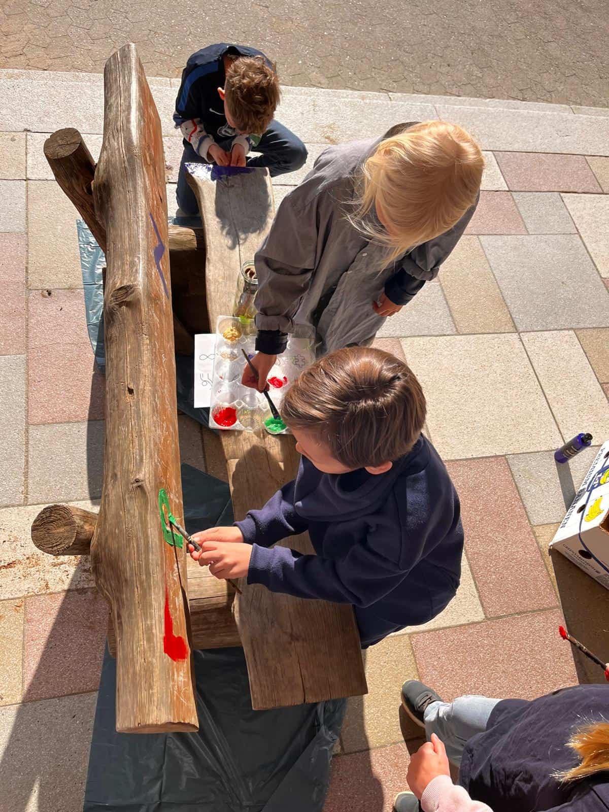 Mit dieser liebevoll gestalteten Bank setzen wir ein sichtbares Zeichen für Zusammenhalt, Empathie und Gemeinschaft – Werte, die unser Schulleben jeden Tag prägen sollen.