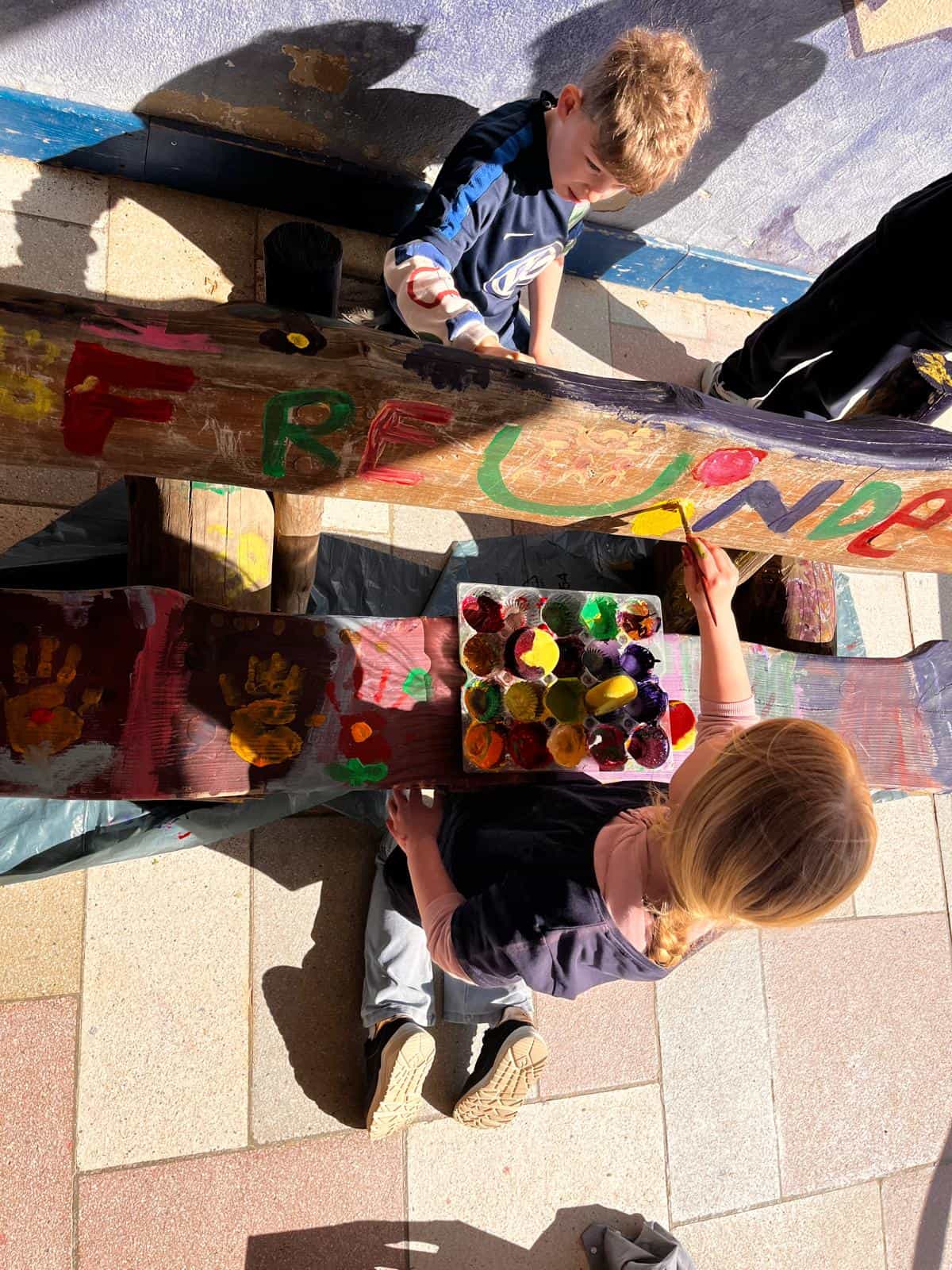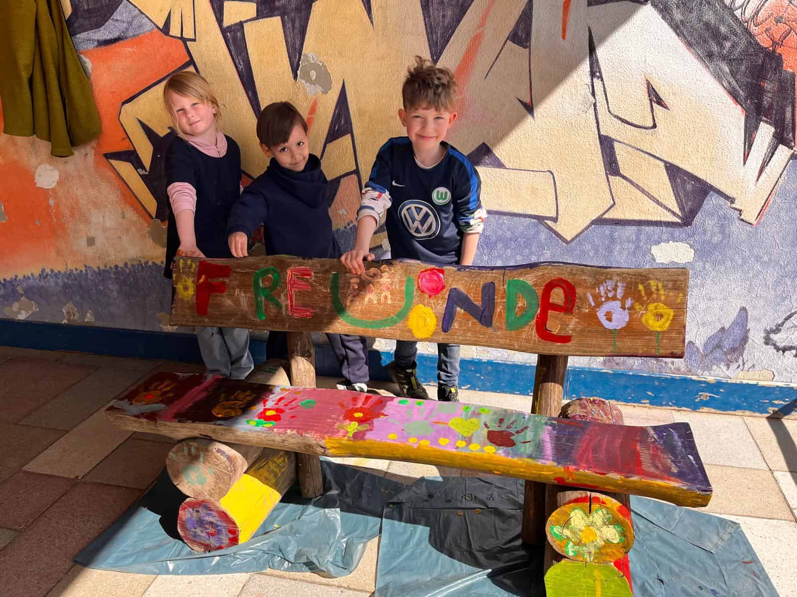 Die Freundschaftsbank ist mehr als nur ein Sitzplatz auf dem Schulhof. Sie ist ein Ort der Begegnung, des Miteinanders und der Aufmerksamkeit. Kinder, die sich allein fühlen oder jemanden zum Spielen suchen, können hier Platz nehmen – und zeigen so auf einfache Weise: „Ich wünsche mir Gesellschaft.“ Gleichzeitig lädt die Bank andere Kinder dazu ein, aufeinander zuzugehen, neue Freundschaften zu knüpfen und füreinander da zu sein.