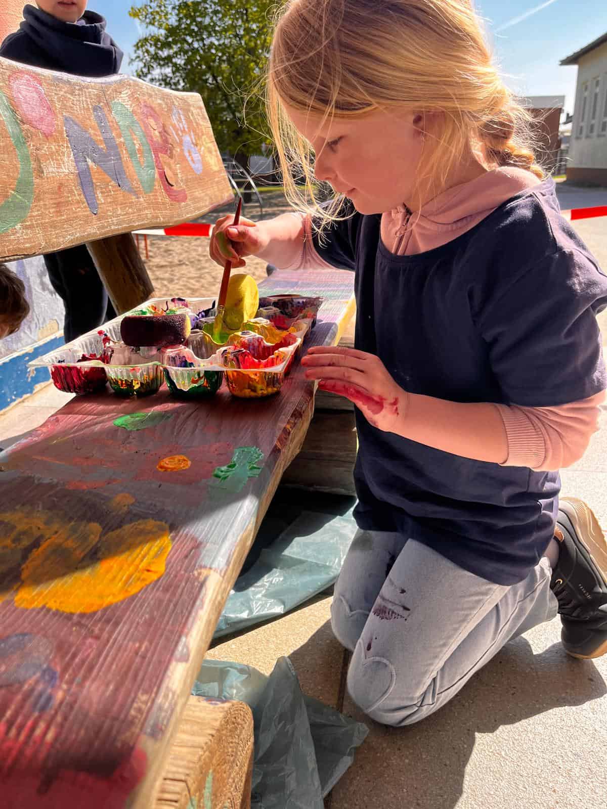 Heute ist ein ganz besonderer Tag: Unsere neue Freundschaftsbank wurde von den Kindern der ersten Klasse mit viel Freude, Kreativität und bunten Farben gestaltet – unterstützt und begleitet von unserer JuKoS-Fachkraft Frau Kuch. Jedes Detail spiegelt die Fantasie und Offenheit unserer noch Jüngsten wider, passend zu unserem Leitbild „Gemeinsam mit vereinter Kraft, man vieles einfach leichter schafft“.