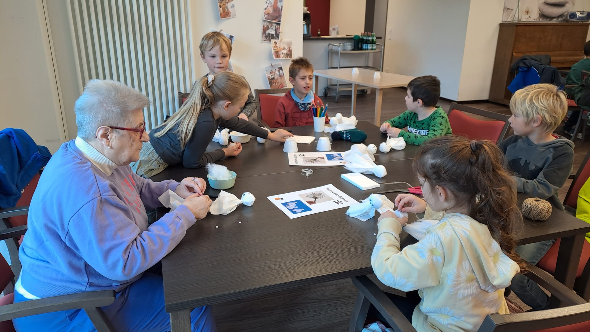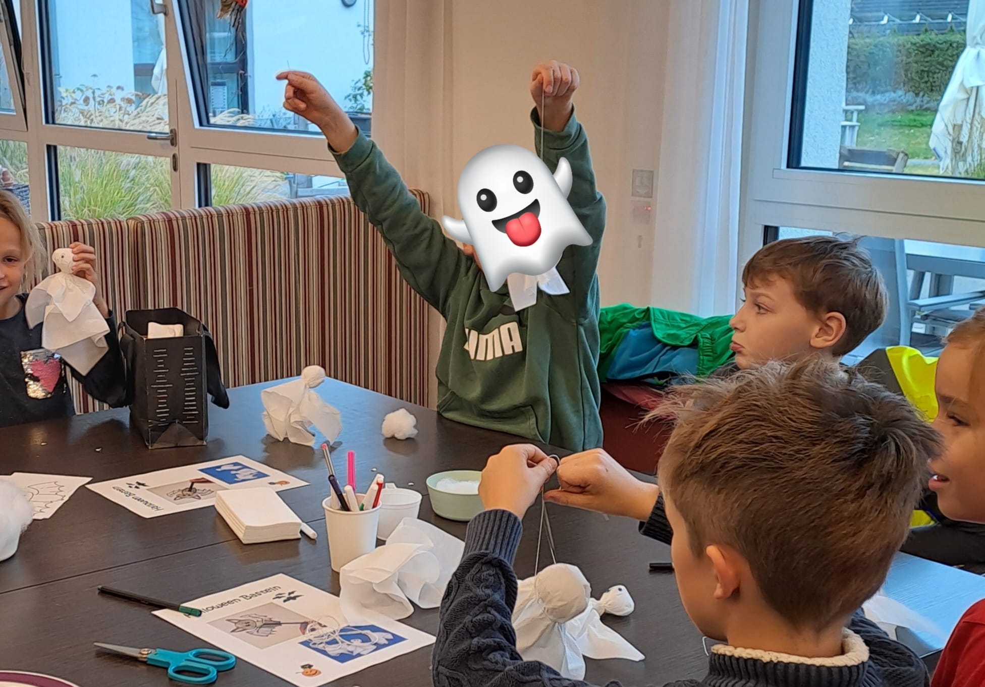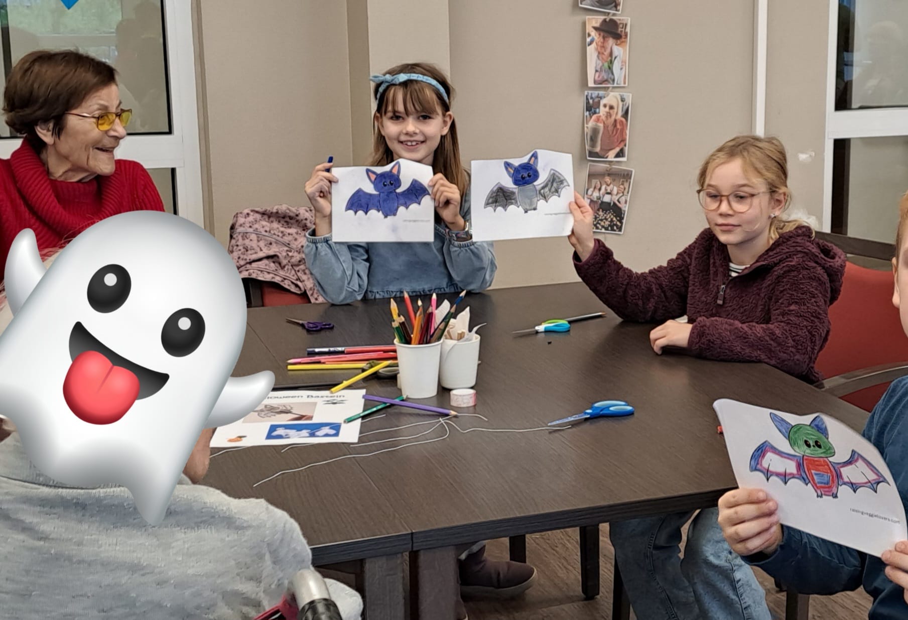 Am Dienstag, dem 29.Oktober war die zweite Klasse zum Basteln ins Seniorenheim eingeladen worden. Schon unterwegs zum Heim rätselten alle gespannt, was wohl auf dem Bastelplan stand. Jedes Kind durfte sich zwischen dem Basteln eines kleinen Gespenstes und einer Fledermaus entscheiden.