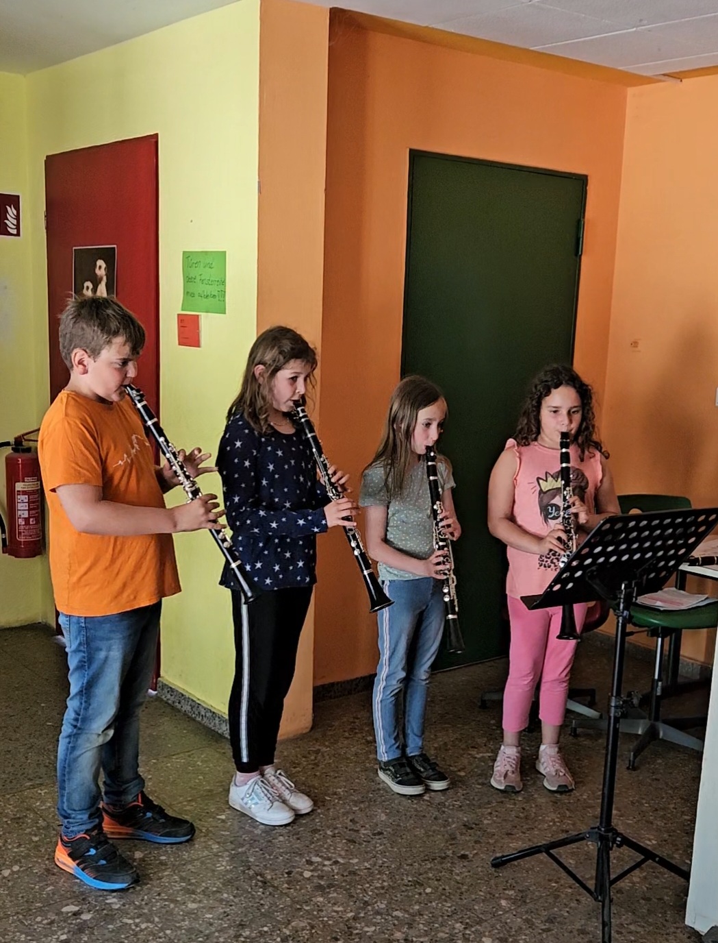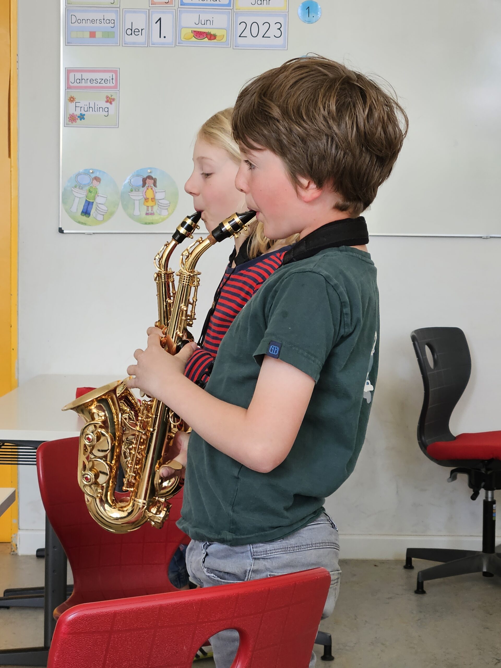 Am 01.06.23 ging unser Instrumentenkarussell in die zweite Runde. Zusammen mit Herrn Kampa und Frau Keller von der Kreismusikschule Gifhorn konnten interessierte Schüler und Schülerinnen der Jahrgänge 2-4 sich gemeinsam am Saxofon und der Querflöte ausprobieren. Ein besonderes Highlight für die neuen INKA Kinder waren unsere zwei Instrumentalgruppen, die mit der Klarinette und dem Saxofon ihr Können aus dem letzten Jahr zum Besten gaben. Wir freuen uns auf eine weitere musikalische Reise im kommenden Schuljahr und hoffen, dass viele Kinder die Freude am gemeinsamen Musizieren beibehalten, um unserem Ziel, ein kleines Ensemble fürs Boldecker Land zu schaffen, ein Stückchen näher zu kommen.