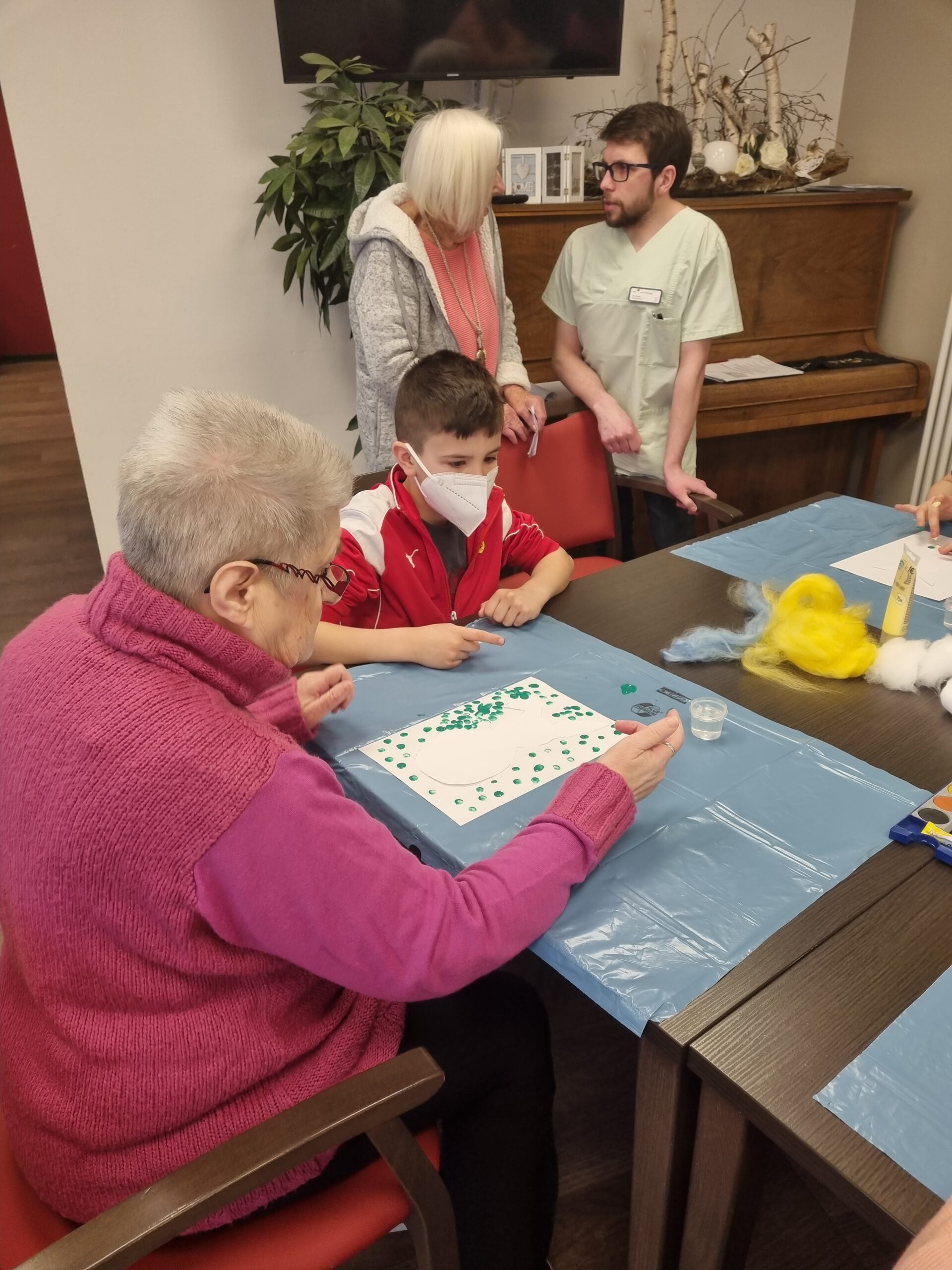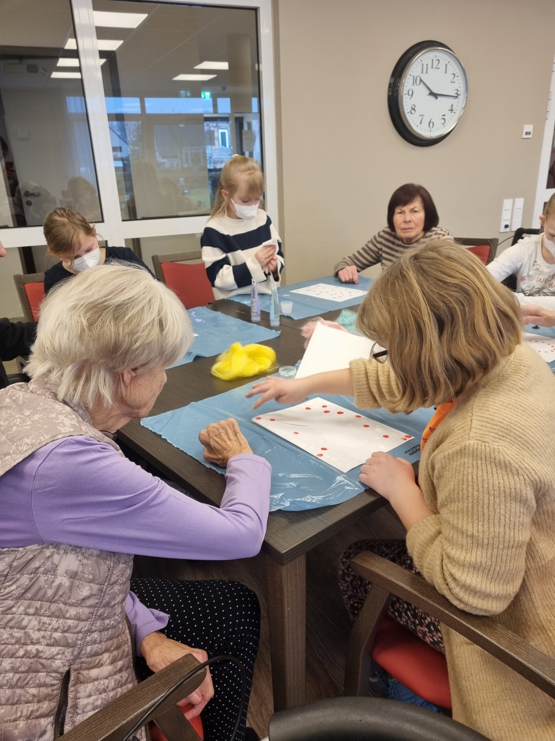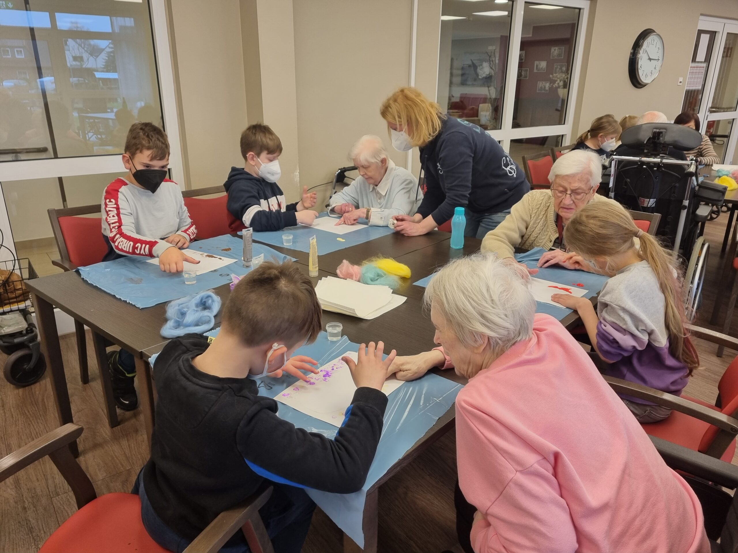 Am Freitag, den 10.03.23 wurde es bunt und kreativ im Empatica, als unsere DrittklässlerInnen zusammen mit den BewohnerInnen die Osterzeit gemeinsam eingeläutet haben. Es wurde viel gelacht, mit Farben experimentiert, Geschichten erzählt und der eine oder andere bunte Punkt landete nicht nur auf dem Papier, sondern verzierte auch so manches Gesicht. Es war wunderbar zu beobachten, wie die Kinder und BewohnerInnen sich gegenseitig ein Lächeln ins Gesicht zauberten, sich miteinander austauschten, motivierten und gegenseitig Mut zusprachen. Die bunten Tupfehasen aus Acryl erzählen uns eine Geschichte von gegenseitigem Respekt, Wertschätzung, Akzeptanz, Gemeinschaft, Nachhaltigkeit und ganz viel Liebe und von essentiellen Begegnungen zwischen Jung und Alt. So viel können wir voneinander lernen! Danke an das tolle Team des Empaticas, die mal wieder sehr liebevolle Vorbereitung und an alle BewohnerInnen für den wunderschönen Vormittag. Wir kommen gerne wieder!