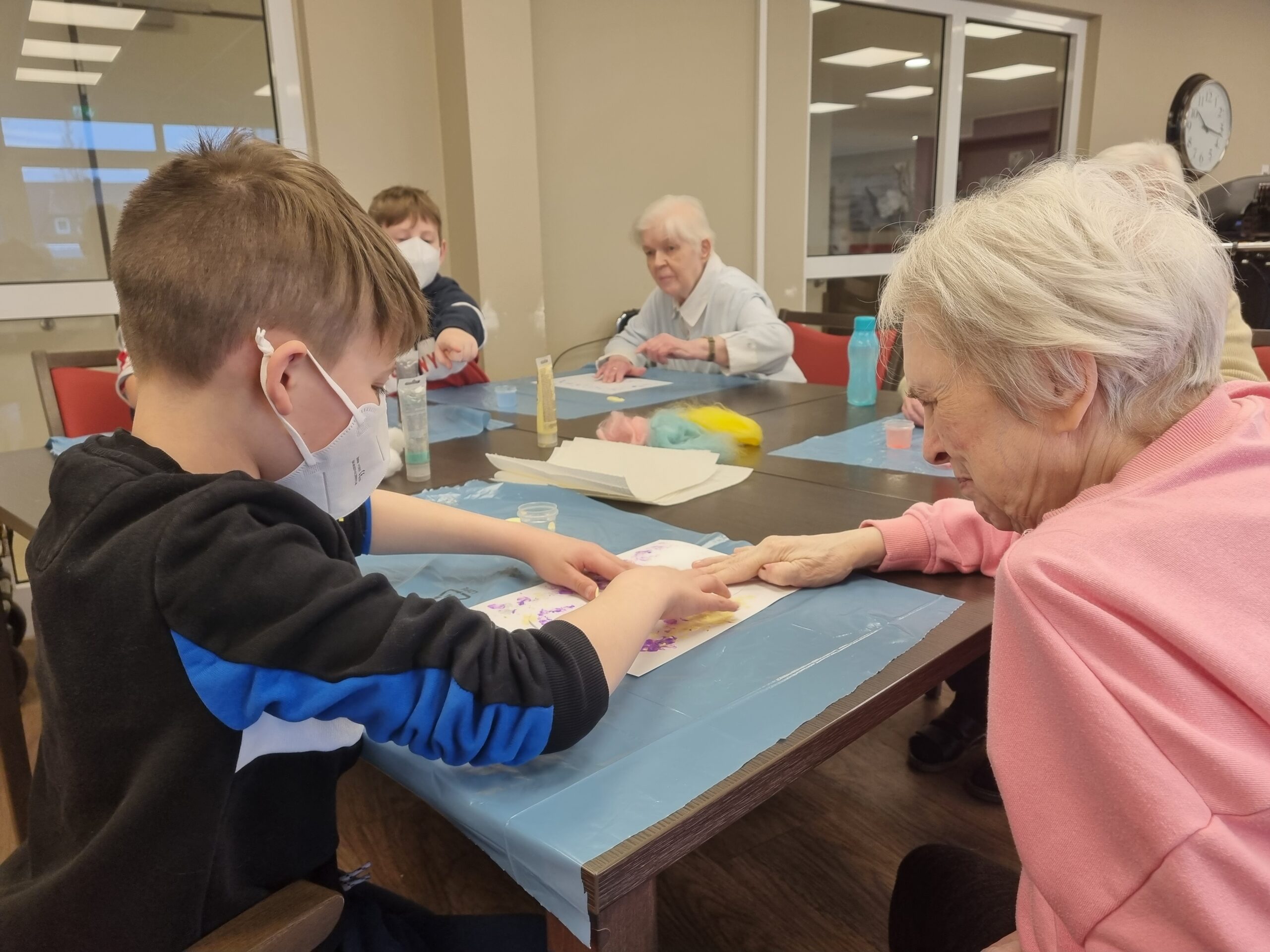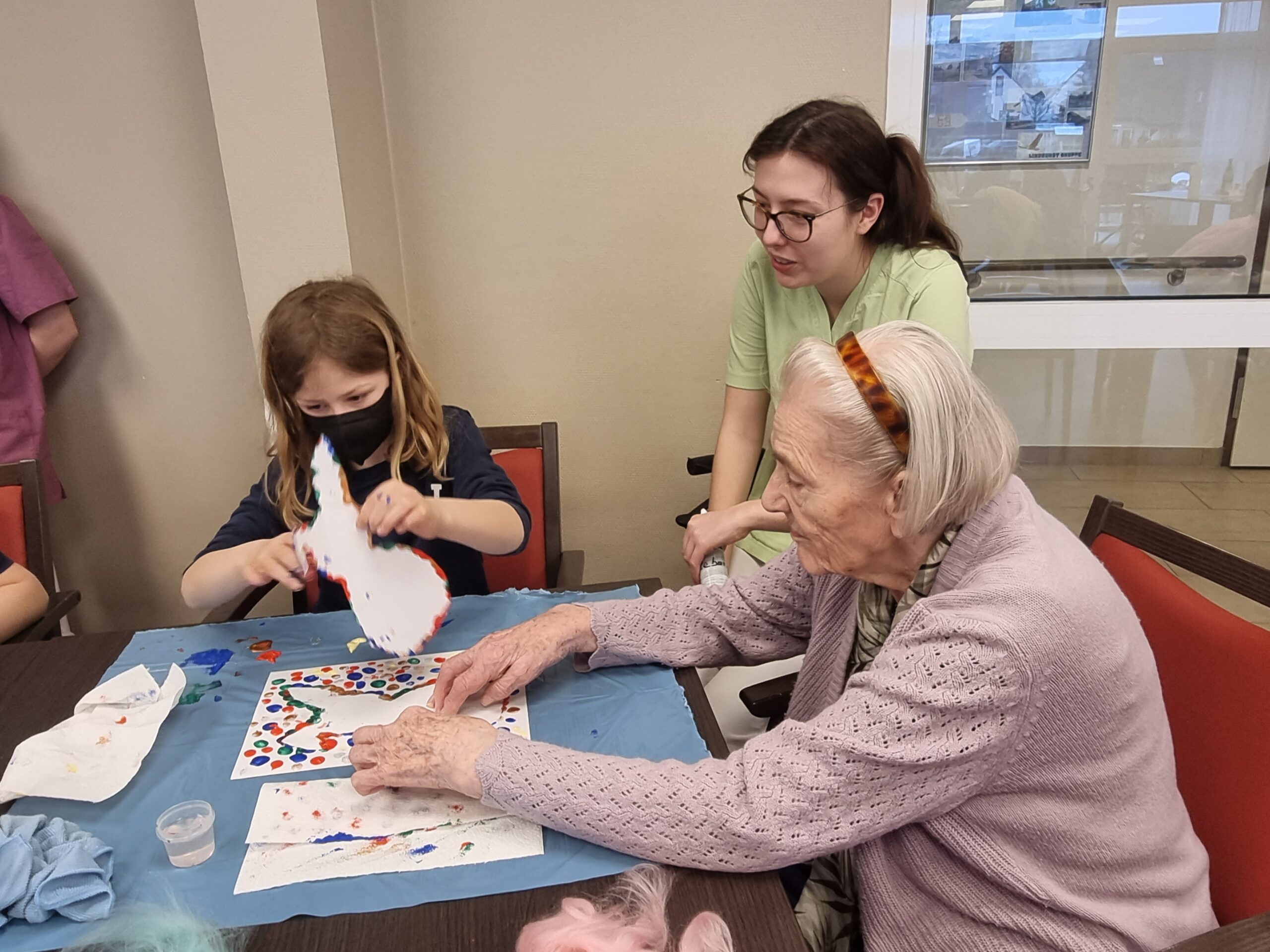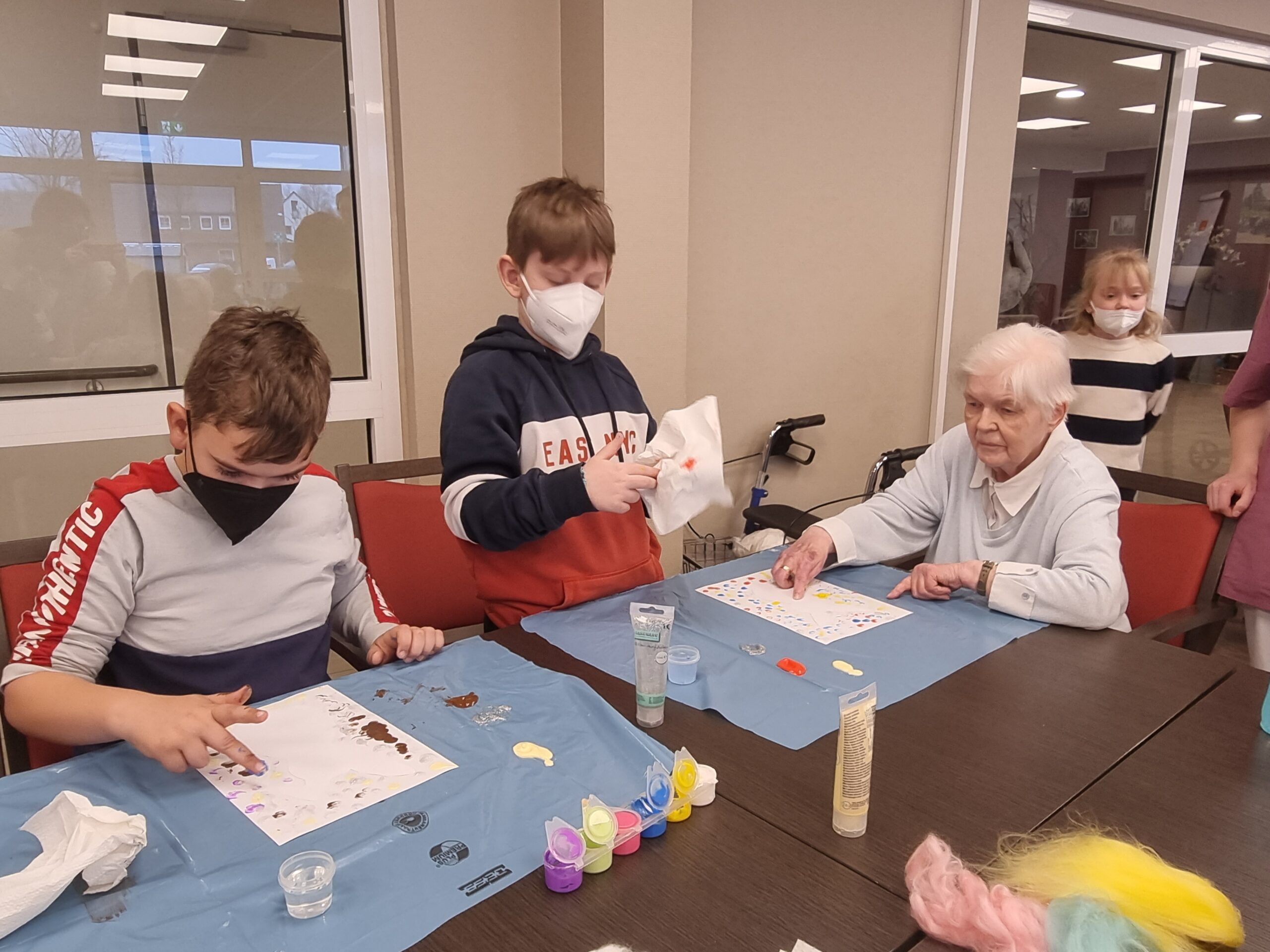 Am Freitag, den 10.03.23 wurde es bunt und kreativ im Empatica, als unsere DrittklässlerInnen zusammen mit den BewohnerInnen die Osterzeit gemeinsam eingeläutet haben. Es wurde viel gelacht, mit Farben experimentiert, Geschichten erzählt und der eine oder andere bunte Punkt landete nicht nur auf dem Papier, sondern verzierte auch so manches Gesicht. Es war wunderbar zu beobachten, wie die Kinder und BewohnerInnen sich gegenseitig ein Lächeln ins Gesicht zauberten, sich miteinander austauschten, motivierten und gegenseitig Mut zusprachen. Die bunten Tupfehasen aus Acryl erzählen uns eine Geschichte von gegenseitigem Respekt, Wertschätzung, Akzeptanz, Gemeinschaft, Nachhaltigkeit und ganz viel Liebe und von essentiellen Begegnungen zwischen Jung und Alt. So viel können wir voneinander lernen! Danke an das tolle Team des Empaticas, die mal wieder sehr liebevolle Vorbereitung und an alle BewohnerInnen für den wunderschönen Vormittag. Wir kommen gerne wieder!