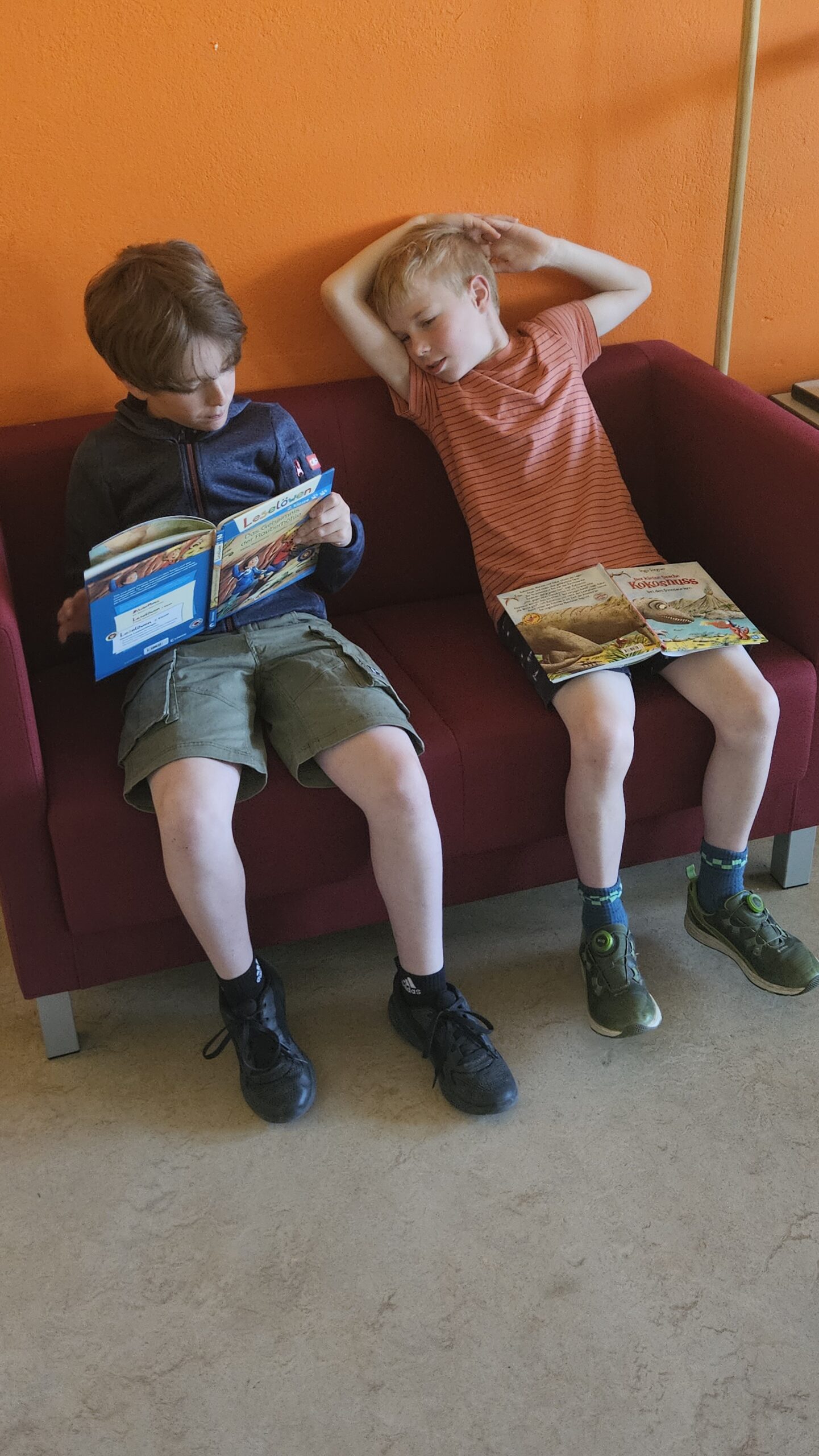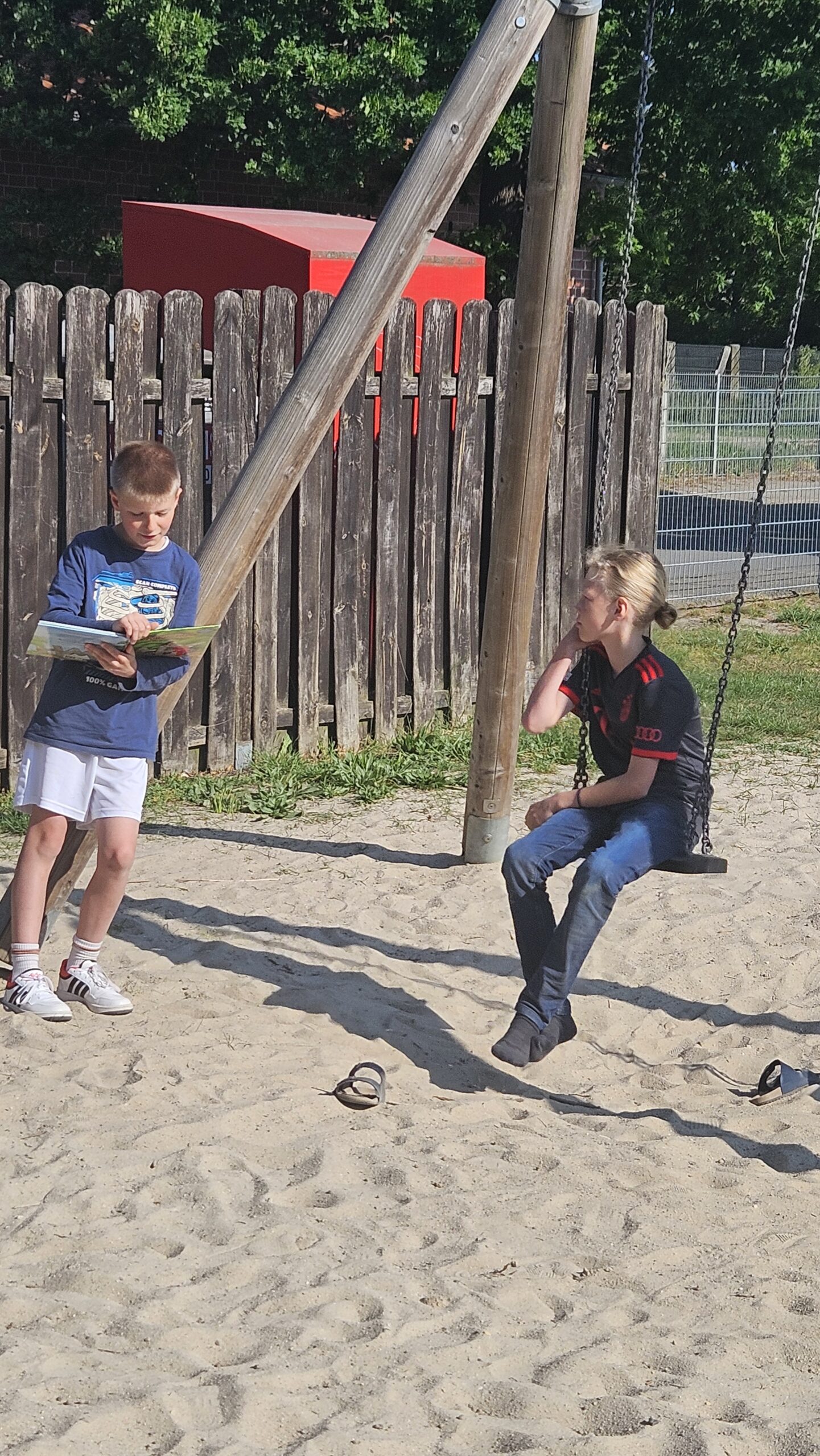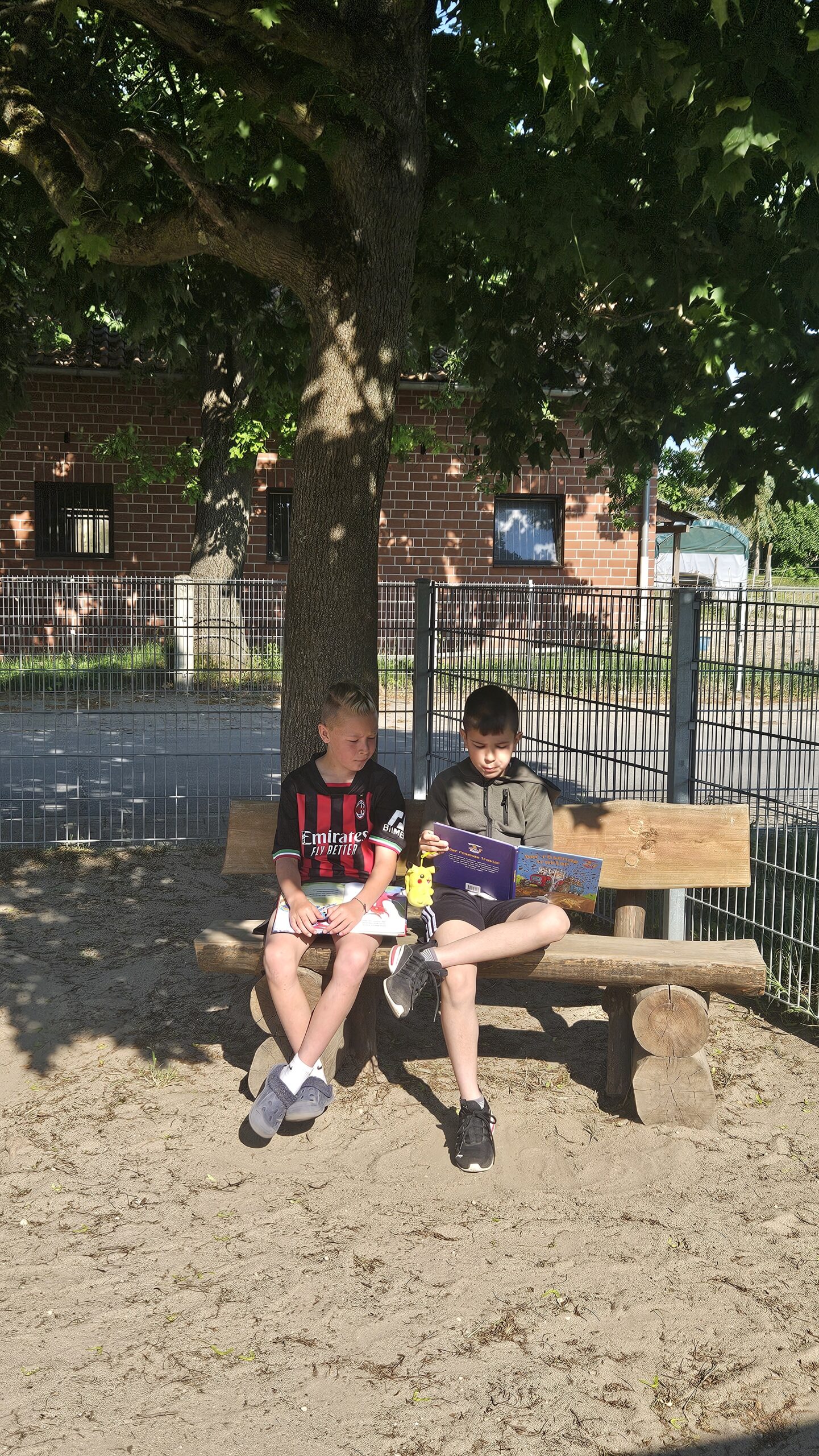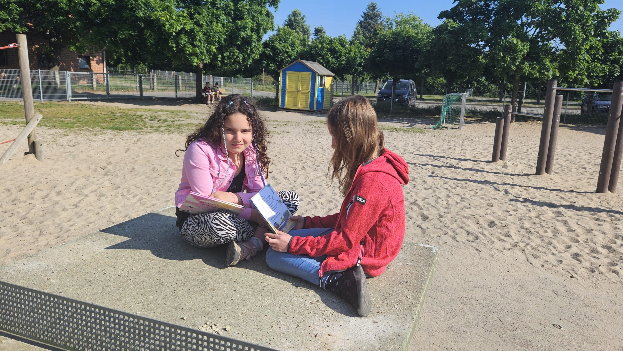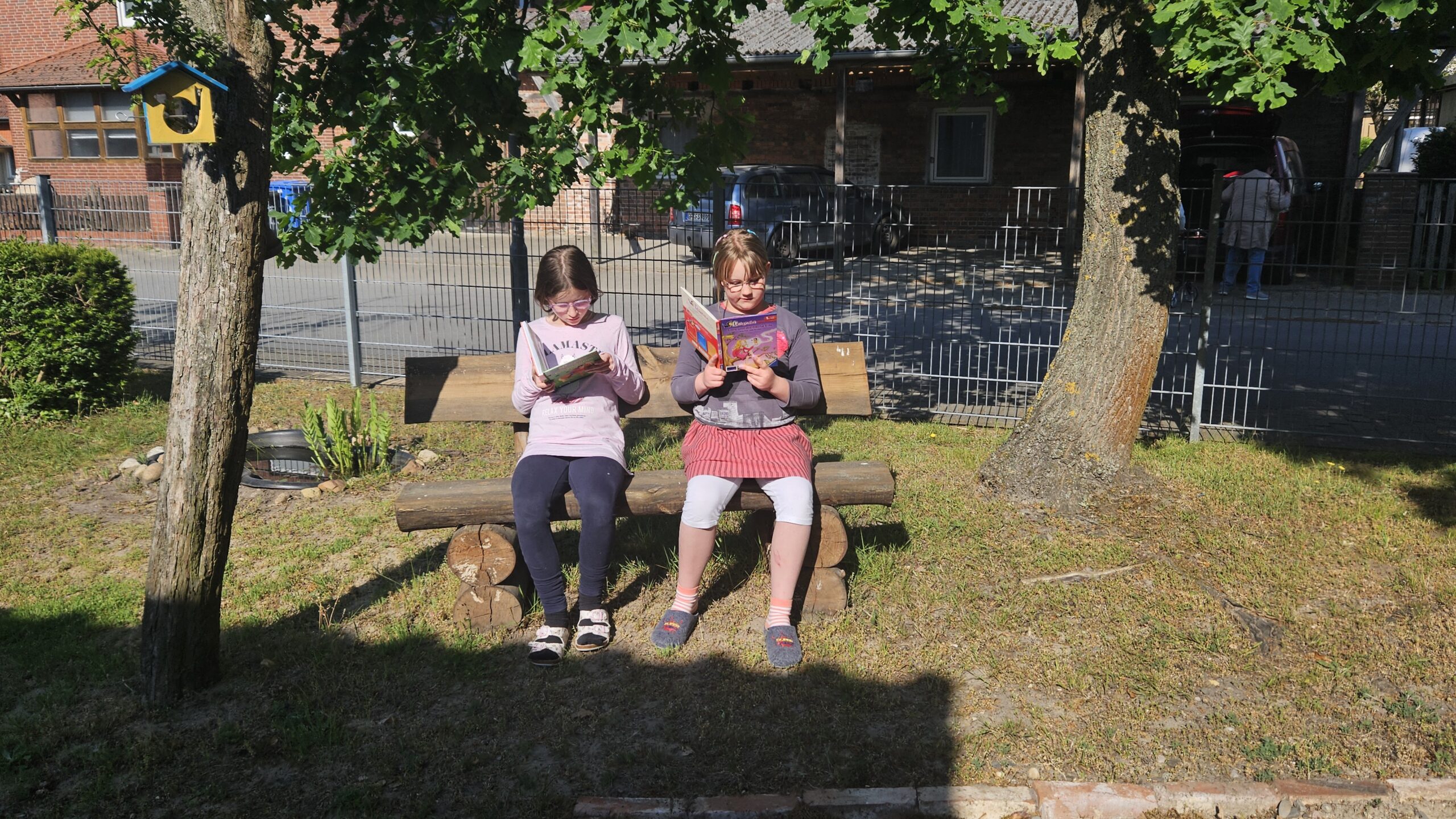 Ob bei den Hühnern, im grünen Klassenzimmer, unter dem Baum, auf der Rutsche oder der Tischtennisplatte – gelesen werden durfte überall dort, wo man sich wohlfühlte.