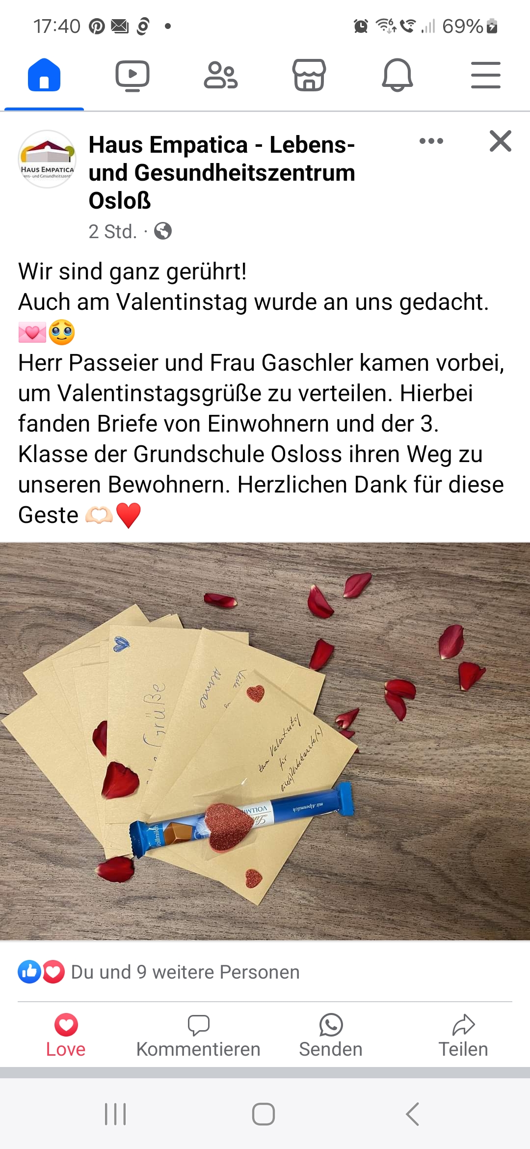 Unter dem Motto „Schreib mal wieder“ haben die Drittklässler zum Valentinstag Briefe an die Bewohner und Bewohnerinnen des Empaticas geschrieben. Die Freude im Empatica war groß, als Herr Passeier zusammen mit Frau Gaschler die Briefe übergab.