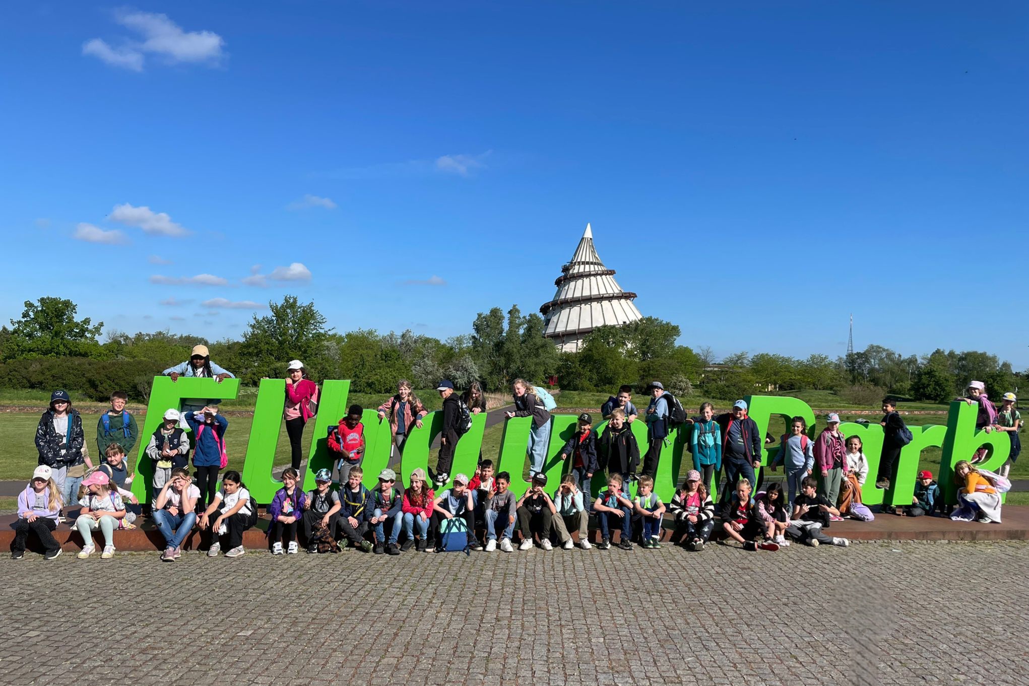 Klasse 4 besuchte den Jahrtausendturm, dieser birgt viele Überraschungen und Rekorde. Mit seinen 60 Metern Höhe ist er das weltweit größte Holzbauwerk seiner Art.