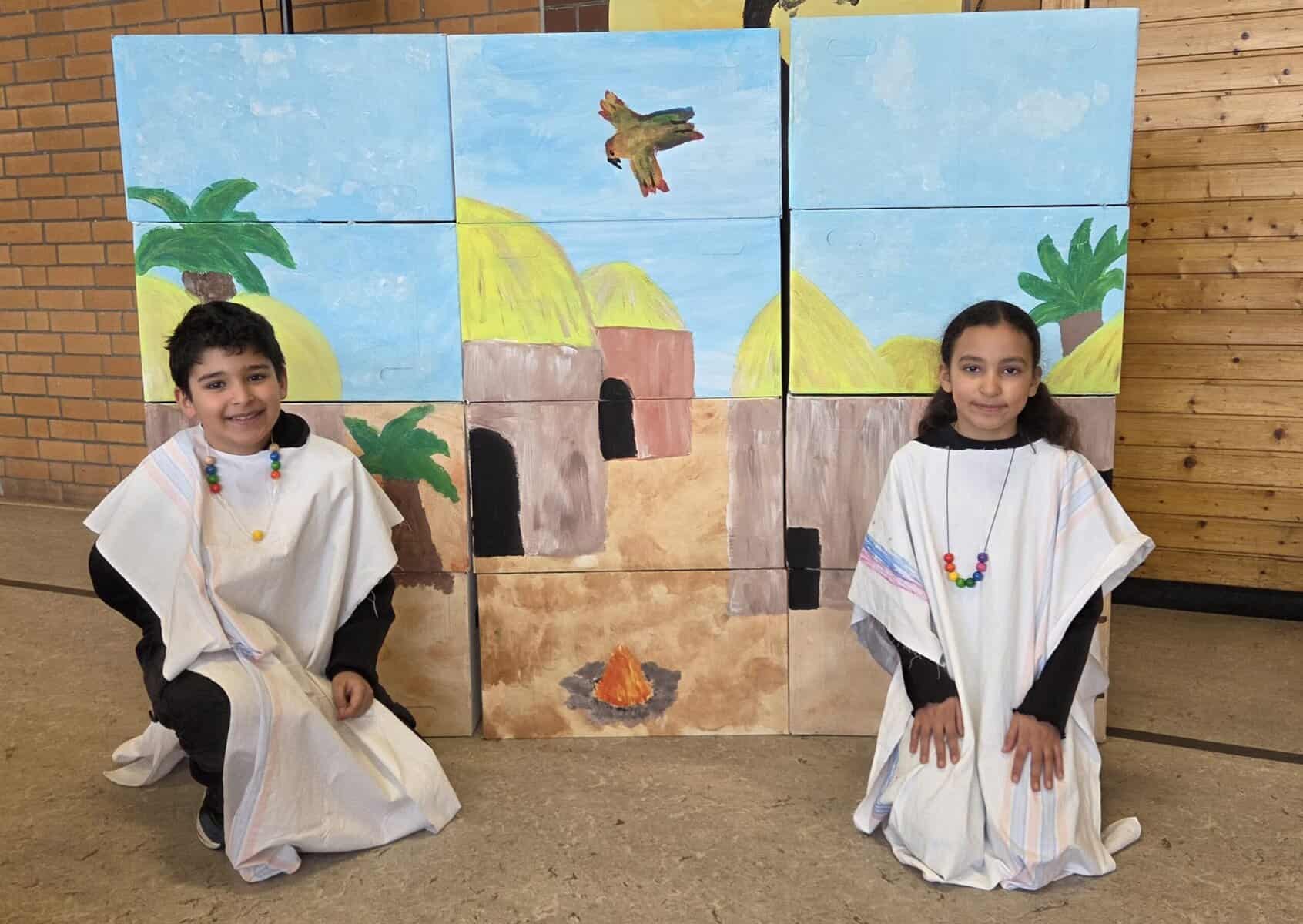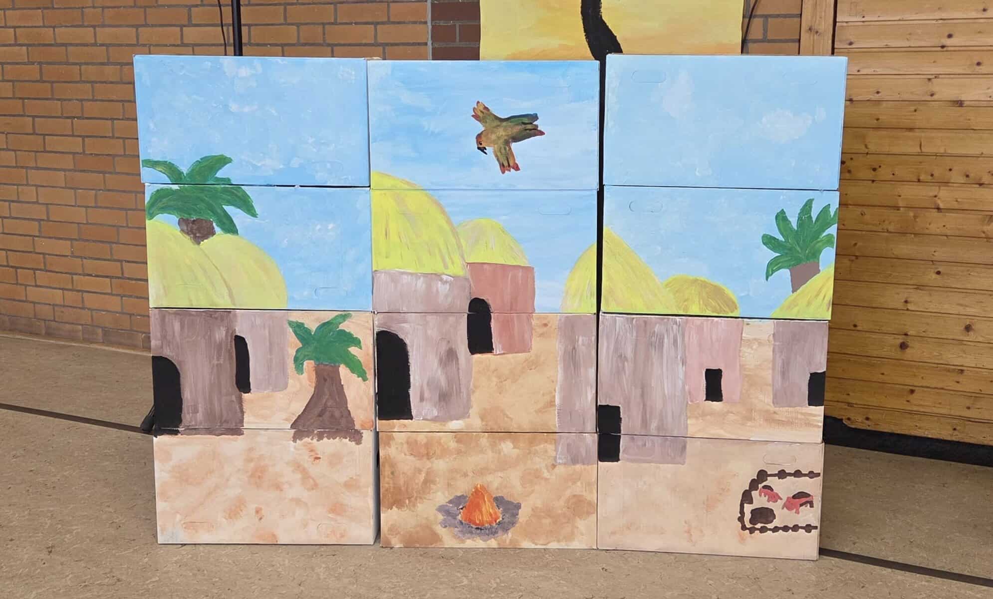 Im Mittelpunkt der Woche stand die mitreißende Geschichte von Juju und Siyabonga, die sich auf eine spannende Suche nach der verloren gegangenen Festtrommel machten. Ohne sie konnte Bantamba – das große Trommelfest unter dem Baum – nicht beginnen. Zum Glück erhielten die beiden Unterstützung aus der Tierwelt: Zebras, Gnus, Nilpferde und sogar Pinguine machten sich gemeinsam auf den Weg. Am Ende wurde die Trommel gefunden, und alle konnten miteinander feiern. Die Geschichte zeigte eindrucksvoll, wie wichtig Zusammenhalt, Mut und gegenseitige Unterstützung sind.