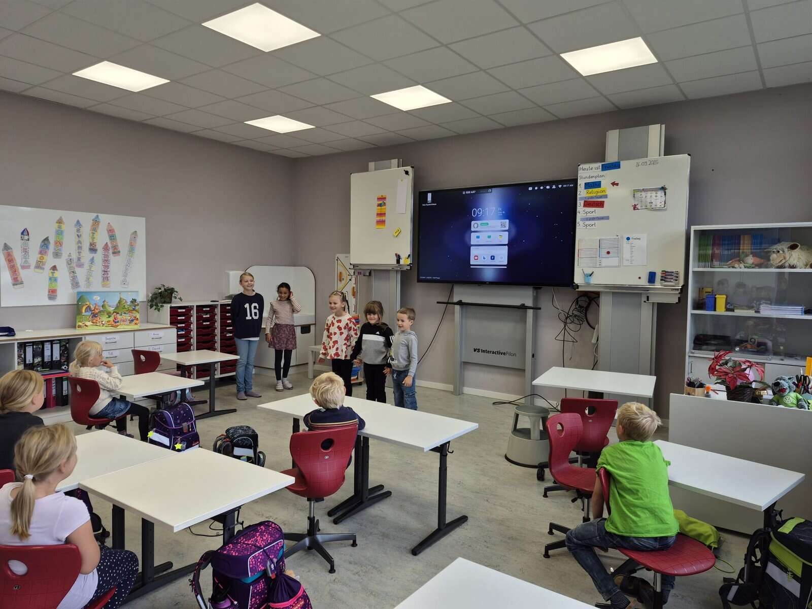 - Kinder lernen in einem hellem, ansprechendem Klassenzimmer mit moderner Technik an der GS Mühlenbergschule Osloß.