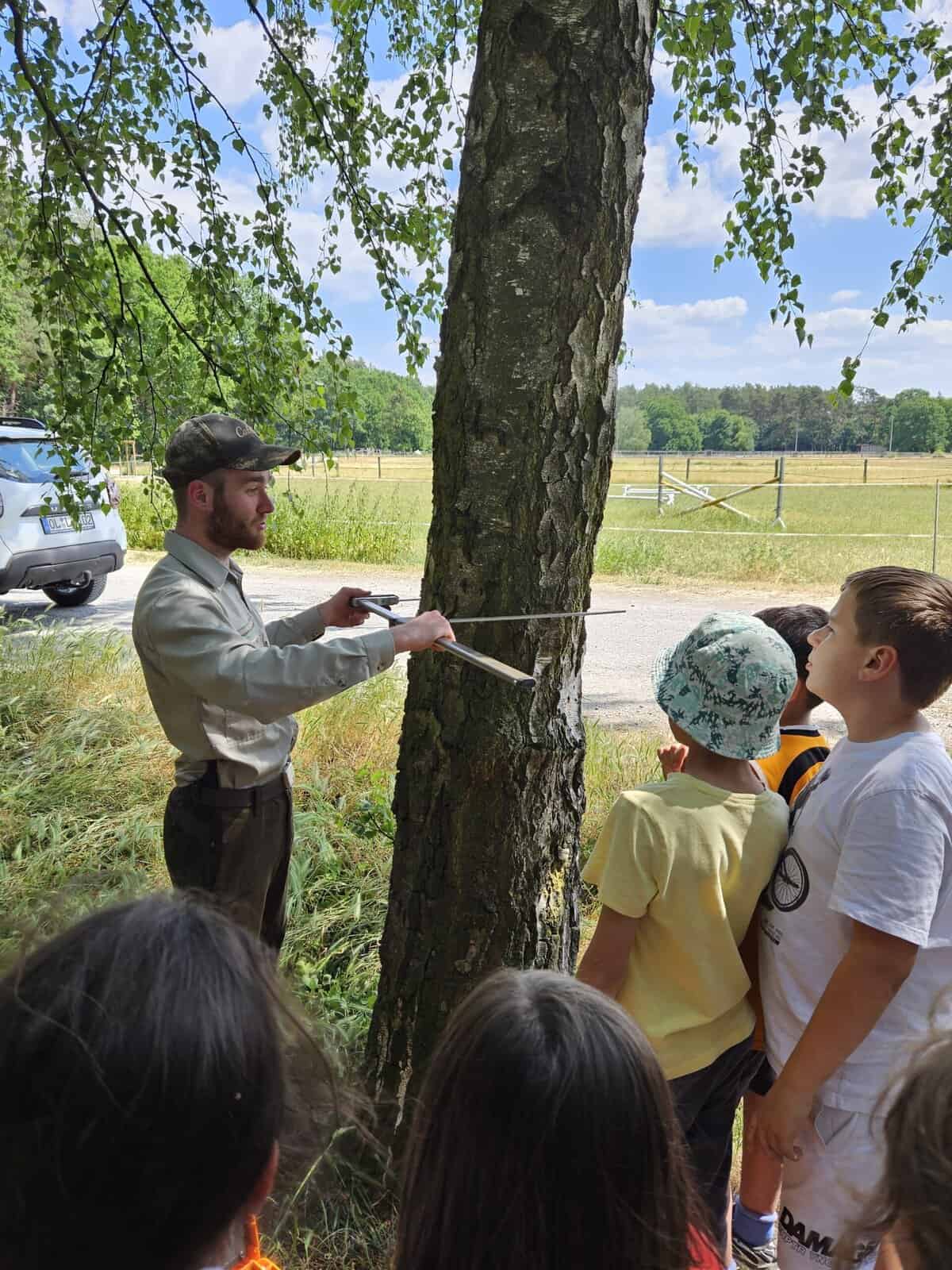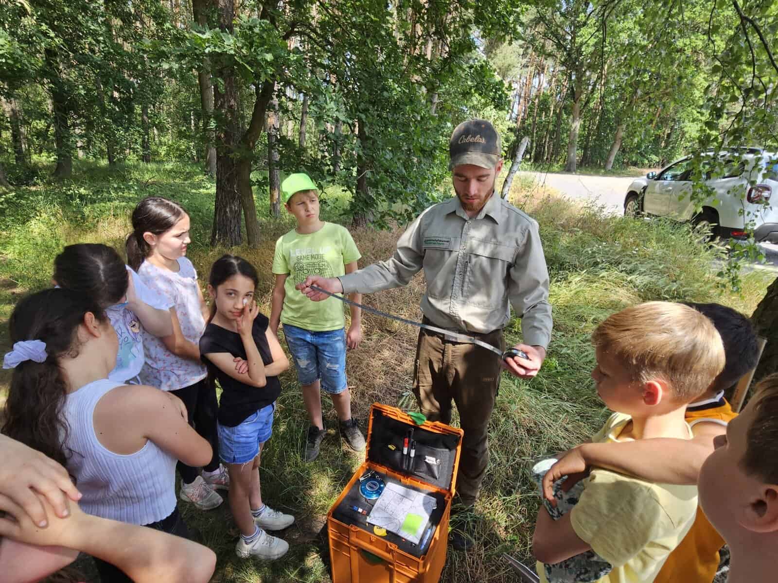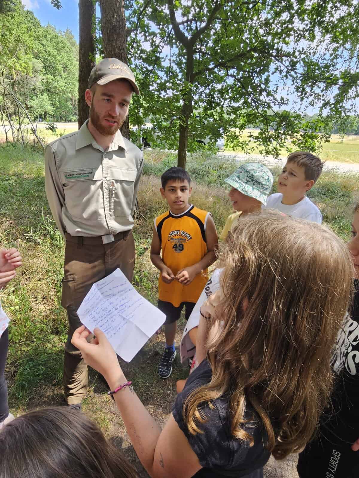 Im Rahmen unserer Wald-AG hat unser ansässiger Bezirksförster Lukas Michaelis aus Dannenbüttel, sich die Zeit genommen, um gemeinsam mit den Viertklässlern über die unterschiedlichen Waldarten, Baumbestände sowie wichtigen und vielfältigen Aufgaben eines Försters zu sprechen. Hierunter fallen z.B. die Holzernte, der Waldbau, Erstaufforstung oder Umbau, aber auch Durchforstungsmaßnahmen, Waldschutz und/oder Wegebau etc.. Über ein kooperatives Lernspiel konnten die Kinder weiterhin erfahren, wie wichtig der Umgang mit unseren natürlichen Ressourcen für die nachfolgenden Generationen ist und, dass wir im Rahmen des Klimaschutzes darauf Acht zu geben haben, dass wir dem Wald nicht mehr nehmen, als wir ihm durch z.B. Neuanpflanzungen zurückgeben können. Weiterhin wurden die Kinder dafür sensibilisiert, sich verantwortungsbewusst im Wald und grundsätzlich in der Natur zu verhalten (z.B. Brandschutz) und sie zu schützen.