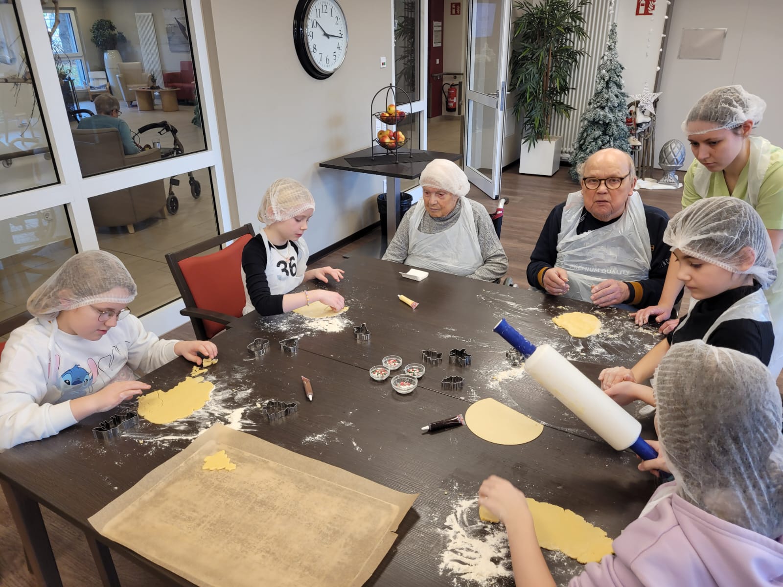 Am Dienstag, dem 26.11.2024, besuchte die 4. Klasse der Mühlenbergschule das Haus Empatica in Osloß zum vorweihnachtlichen Keksebacken. Nach einer freundlichen Begrüßung durch die Bewohnerinnen und Bewohner des Pflegeheims und dem Austausch einiger netter Worte, wurde gemeinsam mit der Weihnachtsbäckerei gestartet. Es wurde ausgerollt, ausgestochen, verziert und zuletzt natürlich auch genascht. Bevor sich die Schülerinnen und Schüler wieder auf den Heimweg machten, sangen alle gemeinsam noch ein Weihnachtslied. Wir danken dem Haus Empatica, dass solch gemeinsamen Projekte immer wieder möglich gemacht werden. Die Kinder sind stets voller Vorfreude und profitieren sehr von dem Austausch, der in diesem Rahmen ermöglicht wird. Auch bedanken wir uns für die Organisation und die wunderschönen vorweihnachtlichen Stunden.